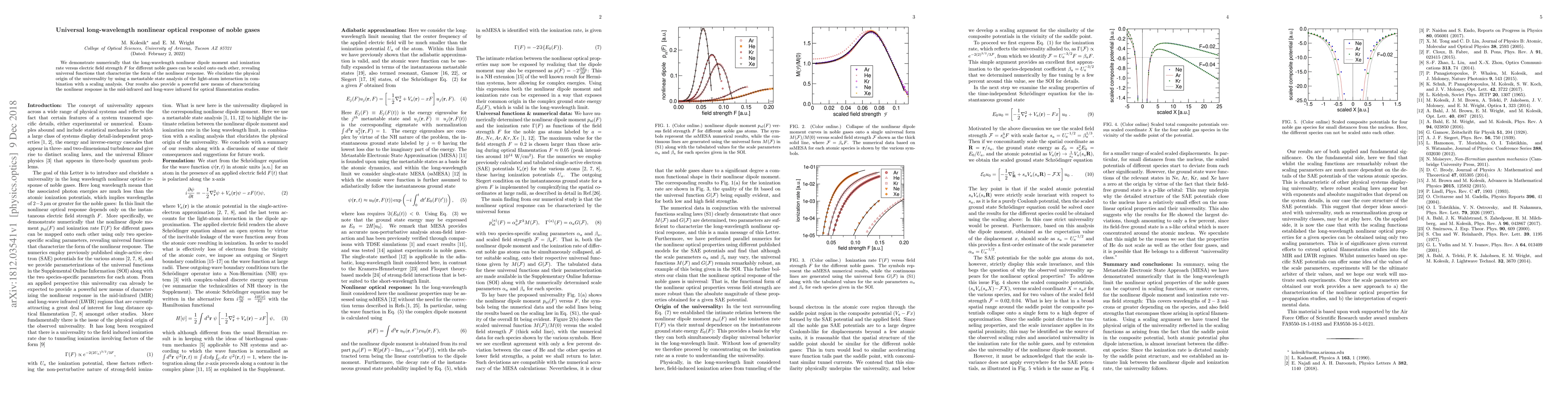 We demonstrate numerically that the long-wavelength nonlinear dipole moment and ionization rate versus electric field strength $F$ for different noble gases can be scaled onto each other, revealing universal functions that characterize the form of the nonlinear response. We elucidate the physical origin of the universality by using a metastable state analysis of the light-atom interaction in combination with a scaling analysis. Our results also provide a powerful new means of characterizing the nonlinear response in the mid-infrared and long-wave infrared for optical filamentation studies.