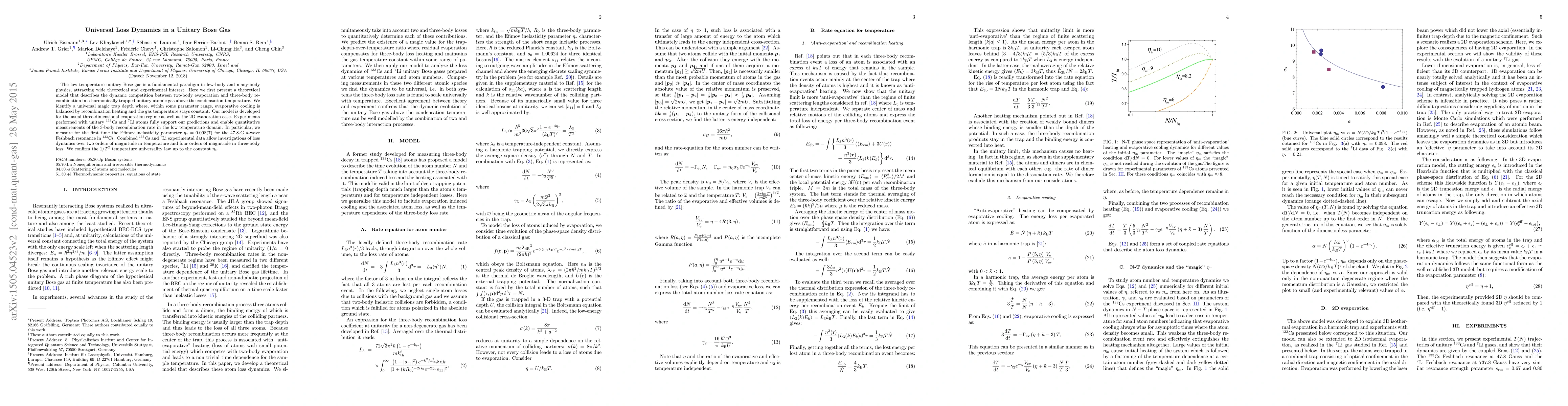 This paper presents a theoretical model for the dynamic balance between evaporative cooling and three-body recombination in a unitary Bose gas, identifying a universal magic trap depth. Experimental validation with 133 Cs and 7 Li atoms confirms the model's predictions and measures the Efimov inelasticity parameter $\eta$ * for a specific resonance.