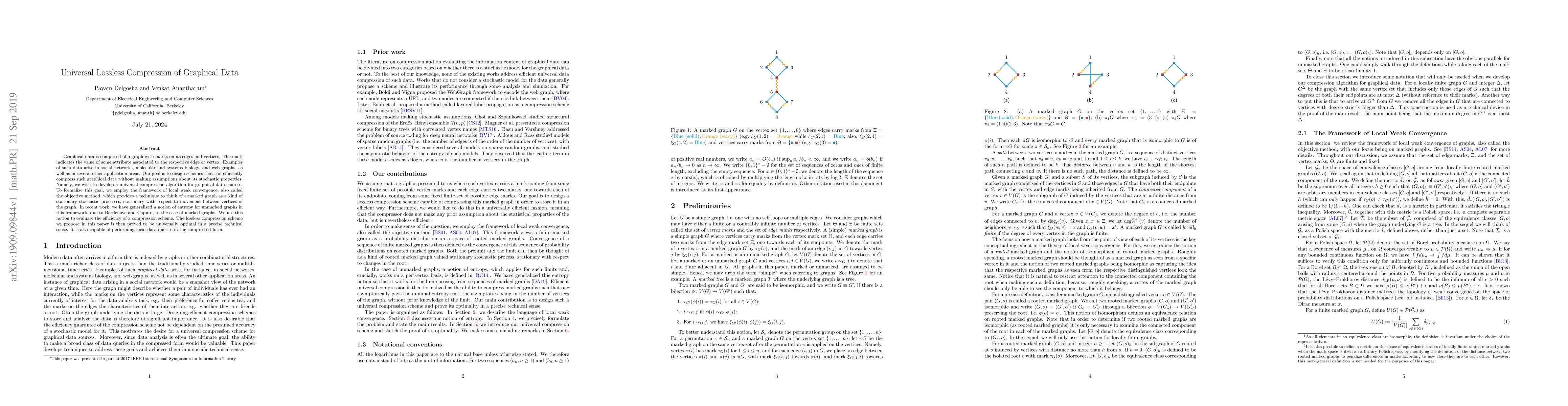 This paper proposes a universal lossless compression scheme for graphical data, employing the framework of local weak convergence to generalize entropy for marked graphs. The developed algorithm is proven to be universally optimal and supports local data queries in its compressed form.