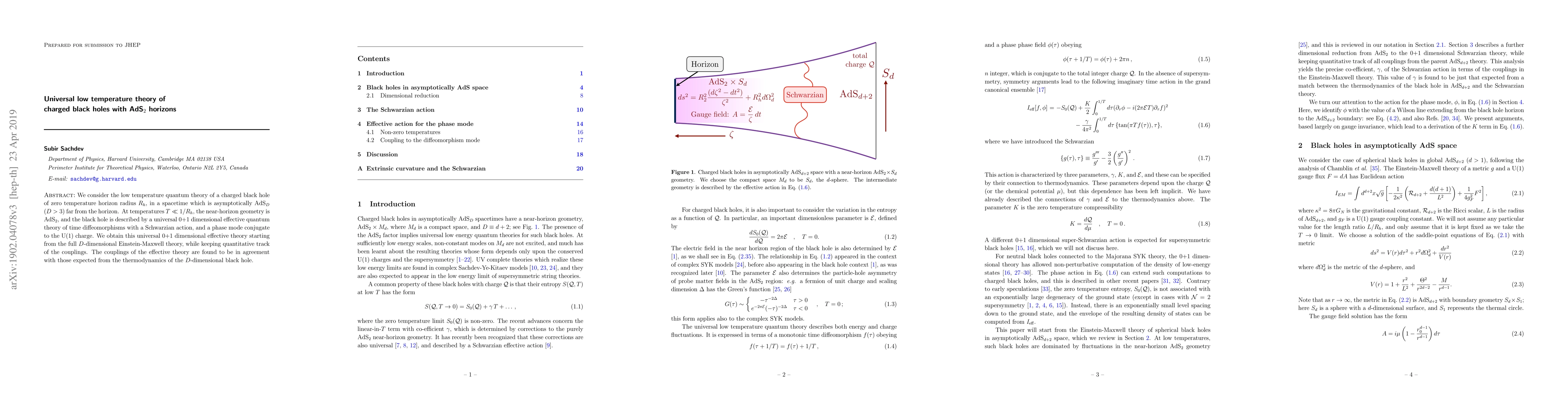 This paper develops a universal low-temperature quantum theory for charged black holes with AdS$_2$ horizons, deriving a 0+1 dimensional effective theory from full $D$-dimensional Einstein-Maxwell theory, which aligns with thermodynamic expectations. The effective theory features a Schwarzian action and a phase mode related to the U(1) charge.