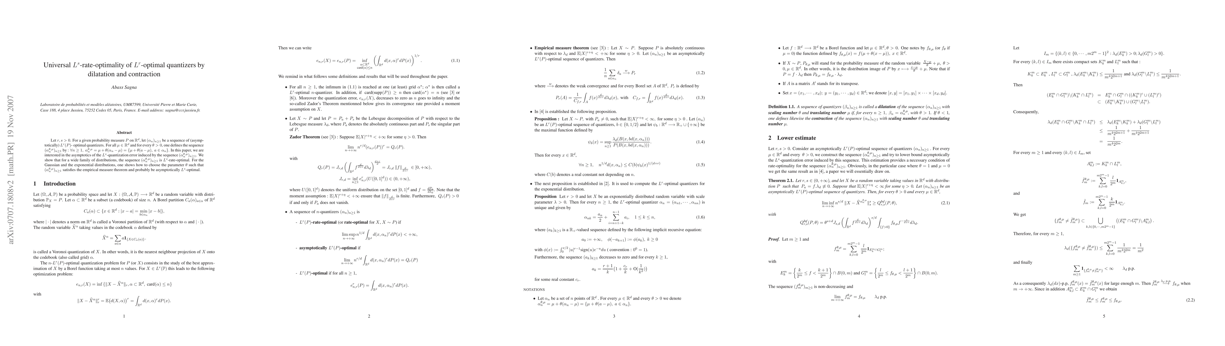 Let $ r, s>0 $. For a given probability measure $P$ on $\mathbb{R}^d$, let $(\alpha_n)_{n \geq 1}$ be a sequence of (asymptotically) $L^r(P)$- optimal quantizers. For all $\mu \in \mathbb{R}^d $ and for every $\theta >0$, one defines the sequence $(\alpha_n^{\theta, \mu})_{n \geq 1}$ by : $\forall n \geq 1, \alpha_n^{\theta, \mu} = \mu + \theta(\alpha_n - \mu) = \{\mu + \theta(a- \mu), a \in \alpha_n \} $. In this paper, we are interested in the asymptotics of the $L^s$-quantization error induced by the sequence $(\alpha_n^{\theta, \mu})_{n \geq 1}$. We show that for a wide family of distributions, the sequence $(\alpha_n^{\theta, \mu})_{n \geq 1}$ is $L^s$-rate-optimal. For the Gaussian and the exponential distributions, one shows how to choose the parameter $\theta$ such that $(\alpha_n^{\theta, \mu})_{n \geq 1}$ satisfies the empirical measure theorem and probably be asymptotically $L^s$-optimal.