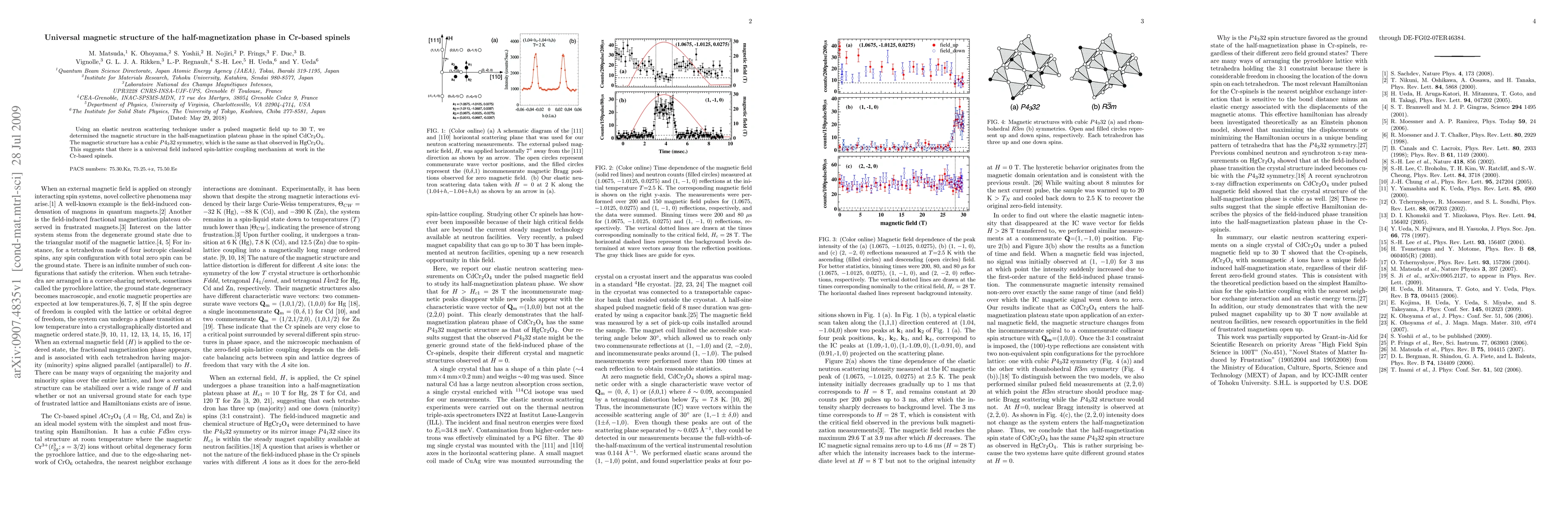 Using an elastic neutron scattering technique under a pulsed magnetic field up to 30 T, we determined the magnetic structure in the half-magnetization plateau phase in the spinel CdCr$_2$O$_4$. The magnetic structure has a cubic $P4_3$32 symmetry, which is the same as that observed in HgCr$_2$O$_4$. This suggests that there is a universal field induced spin-lattice coupling mechanism at work in the Cr-based spinels.