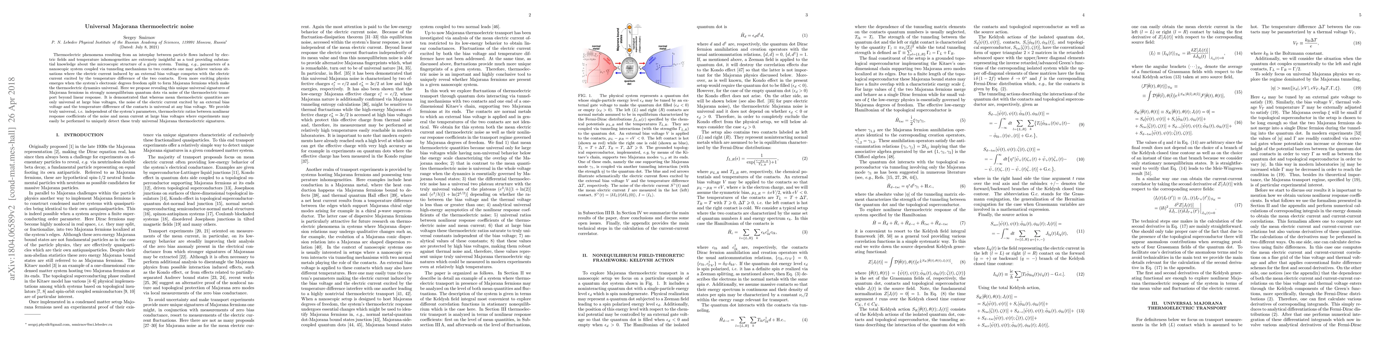 This paper explores thermoelectric phenomena in nanoscopic systems with Majorana fermions, revealing universal signatures in thermoelectric noise at any bias voltage, unlike mean thermoelectric quantities which are universal only at large bias voltages. The study proposes experimental detection of these universal Majorana thermoelectric signatures through noise analysis.