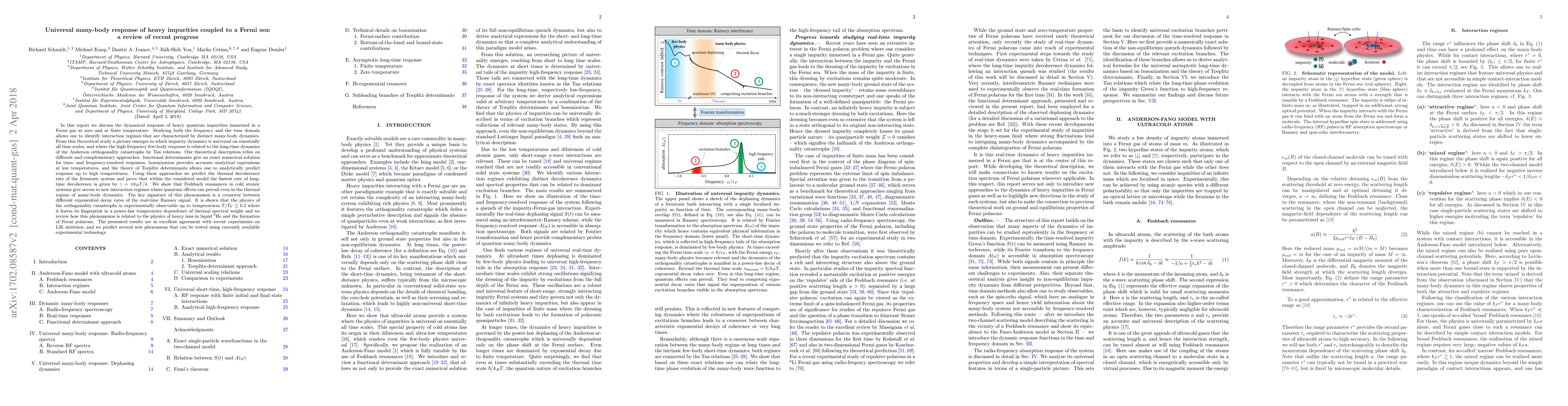 This paper explores the universal many-body response of heavy impurities in a Fermi gas, revealing distinct dynamics at different temperatures and frequencies. The study combines various theoretical methods to predict thermal decoherence rates and highlights the observable effects of the Anderson orthogonality catastrophe, with promising experimental validation in cold atomic systems.