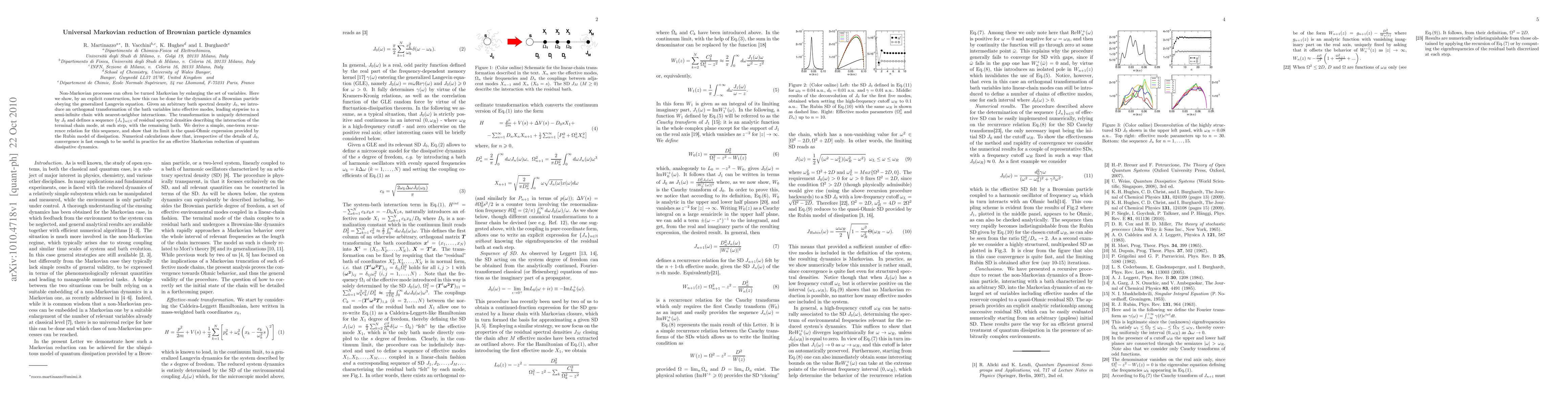 This paper presents a method to convert non-Markovian Brownian particle dynamics into a Markovian form through an orthogonal transformation of the bath variables. The transformation leads to a semi-infinite chain, and a simple recurrence relation is derived for the residual spectral densities, demonstrating effective Markovian reduction for quantum dissipative dynamics.