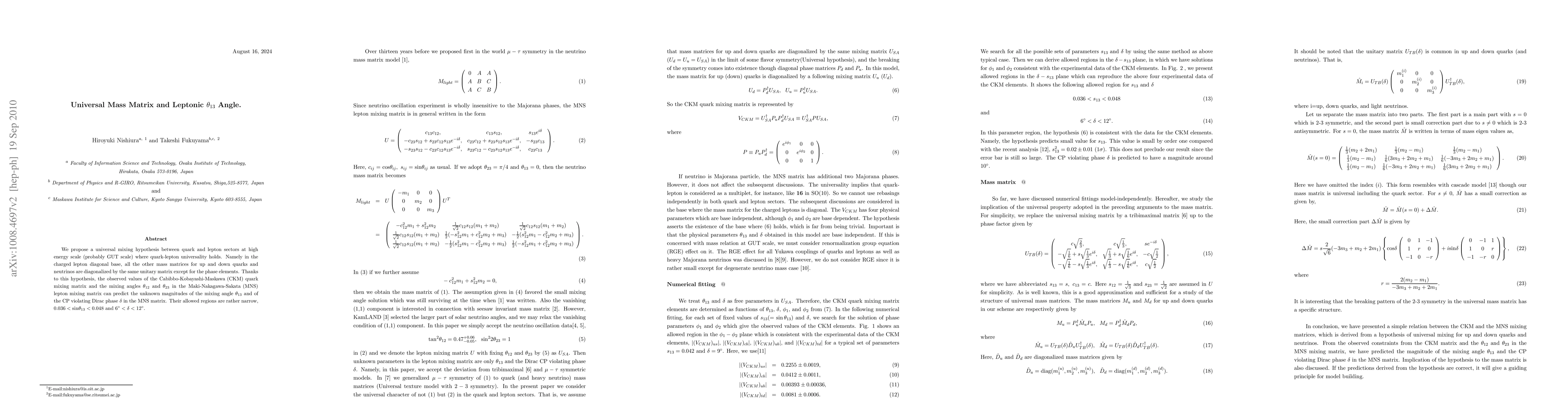 The researchers proposed a universal mixing hypothesis between quark and lepton sectors at high energy scale, where quark-lepton universality holds.