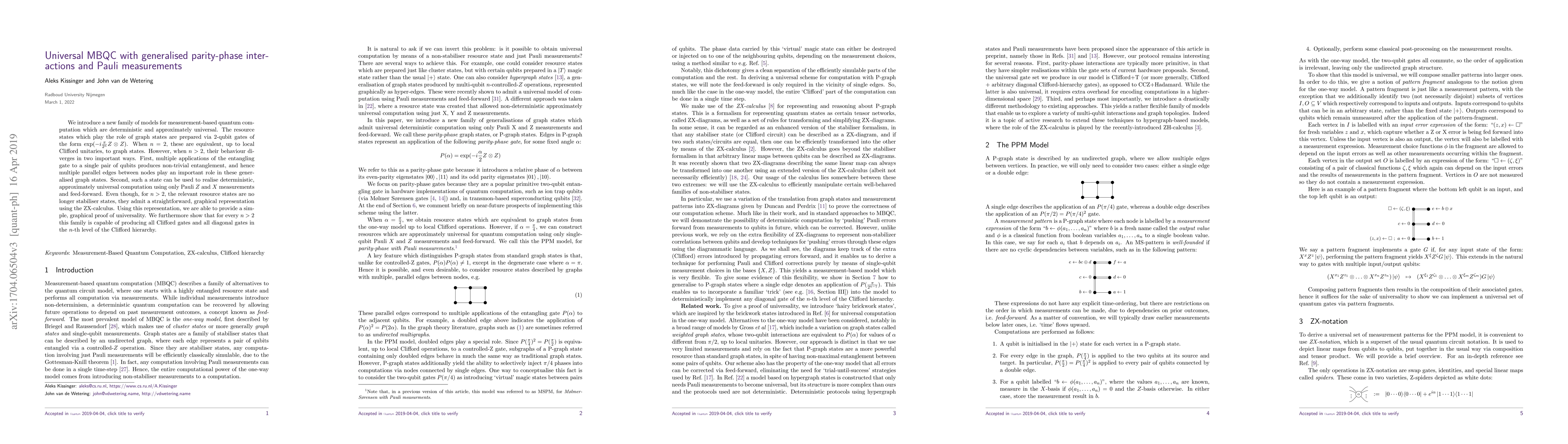 Researchers introduce a new family of models for measurement-based quantum computation using generalised parity-phase interactions and Pauli measurements, which are approximately universal and can produce all Clifford gates and diagonal gates.