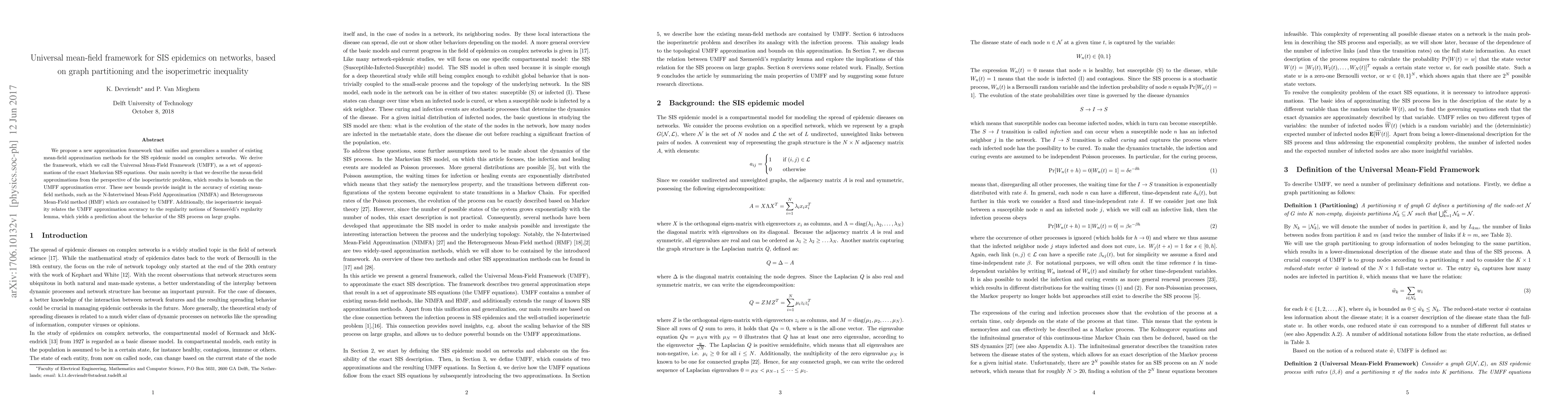 We propose a new approximation framework that unifies and generalizes a number of existing mean-field approximation methods for the SIS epidemic model on complex networks. We derive the framework, which we call the Universal Mean-Field Framework (UMFF), as a set of approximations of the exact Markovian SIS equations. Our main novelty is that we describe the mean-field approximations from the perspective of the isoperimetric problem, an insight which results in bounds on the UMFF approximation error. These new bounds provide insight in the accuracy of existing mean-field methods, such as the widely-used N-Intertwined Mean-Field Approximation (NIMFA) and Heterogeneous Mean-Field method (HMF). Additionally, the geometric perspective of the isoperimetric problem enables the UMFF approximation accuracy to be related to the regularity notions of Szemer\'edi's regularity lemma, which yields a prediction about the behavior of the SIS process on large graphs.