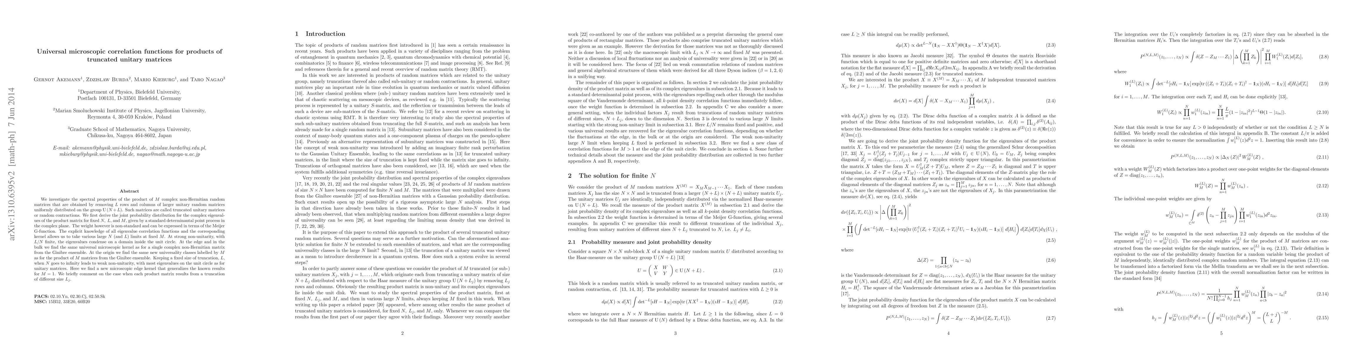 Research finds universal microscopic correlation functions for products of truncated unitary matrices, with eigenvalues condensing on a domain inside the unit circle at strong non-unitarity and exhibiting new universality classes at origin.