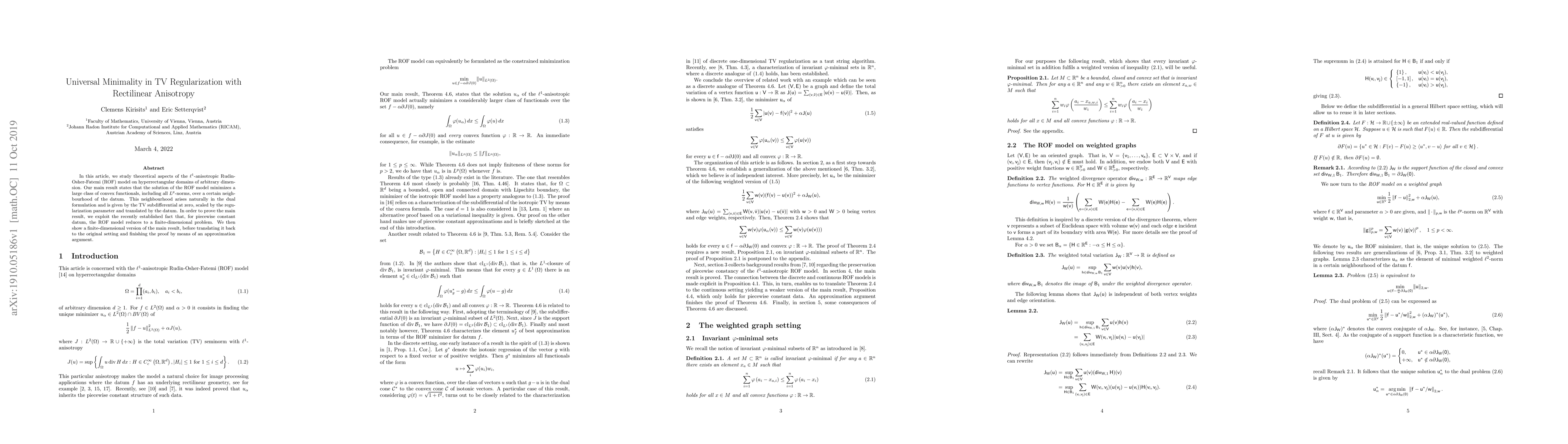 In this article, we study theoretical aspects of the $\ell^{1}$-anisotropic Rudin-Osher-Fatemi (ROF) model on hyperrectangular domains of arbitrary dimension. Our main result states that the solution of the ROF model minimizes a large class of convex functionals, including all $L^p$-norms, over a certain neighbourhood of the datum. This neighbourhood arises naturally in the dual formulation and is given by the TV subdifferential at zero, scaled by the regularization parameter and translated by the datum. In order to prove the main result, we exploit the recently established fact that, for piecewise constant datum, the ROF model reduces to a finite-dimensional problem. We then show a finite-dimensional version of the main result, before translating it back to the original setting and finishing the proof by means of an approximation argument.