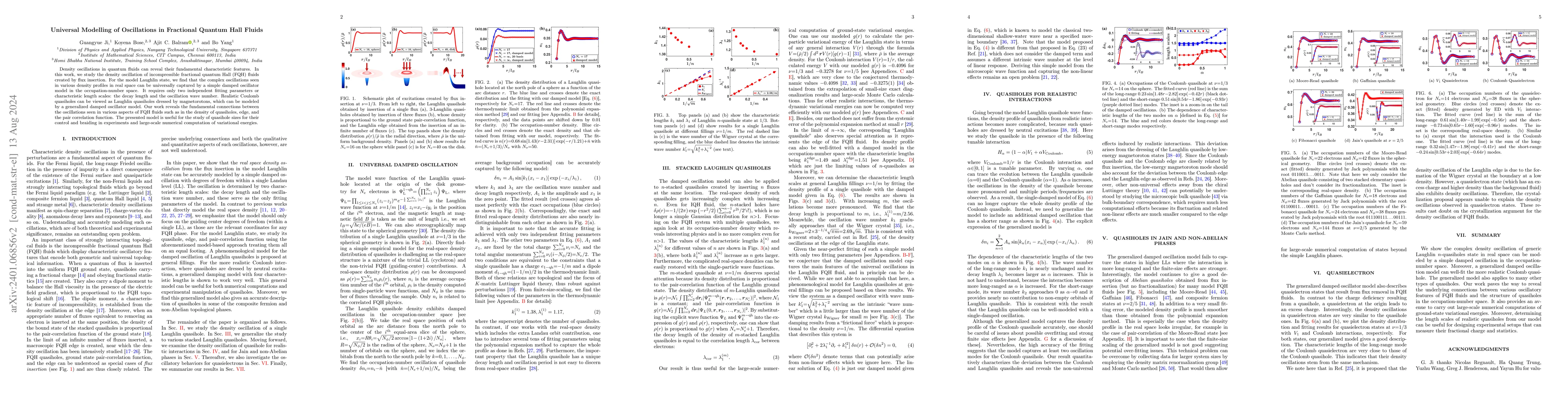 This paper presents a universal damped oscillator model to describe density oscillations in fractional quantum Hall fluids, showing that complex oscillations can be captured with just two parameters. The model reveals fundamental connections between different observable oscillations in FQH fluids, aiding in quasihole size control and braiding experiments.