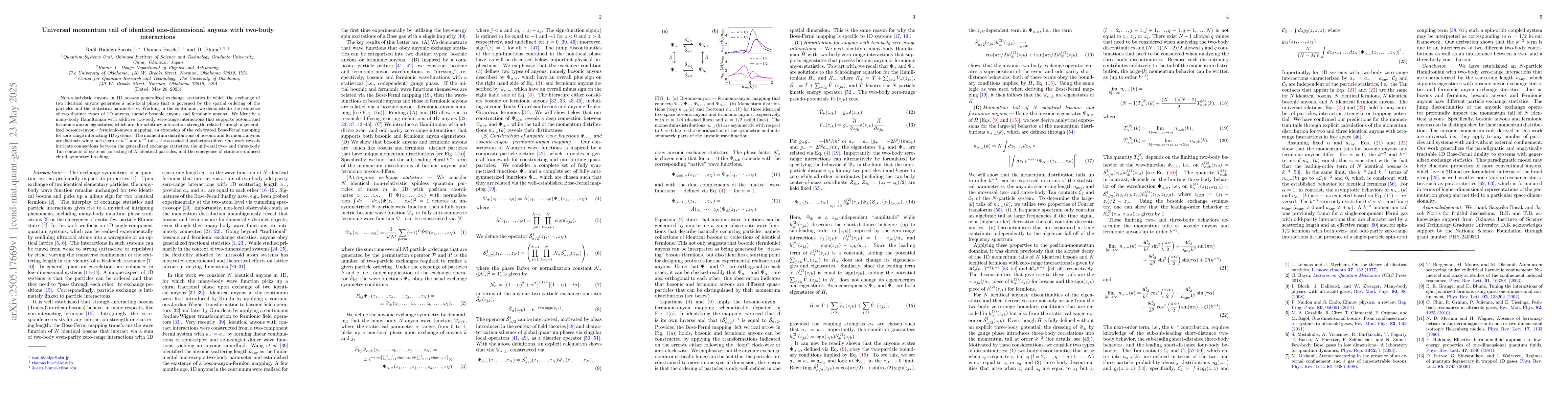 The introduction of a generalized bosonic-anyon--fermionic-anyon mapping for zero-range interacting 1D systems and the analysis of universal momentum tails in anyonic systems.
