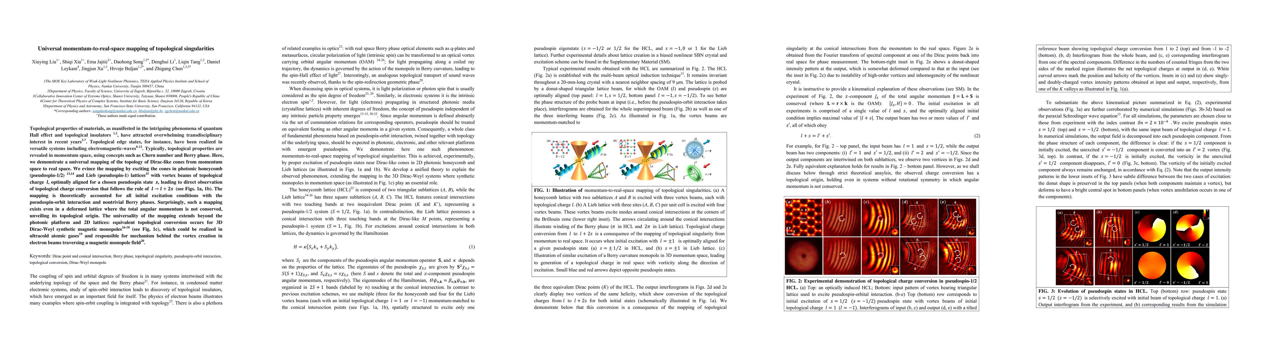 This paper demonstrates a universal method to map topological singularities from momentum space to real space, exemplified in photonic lattices using vortex beams. The study reveals topological charge conversion rules and extends the findings to 3D Dirac-Weyl monopoles, highlighting the topological origin's universality.