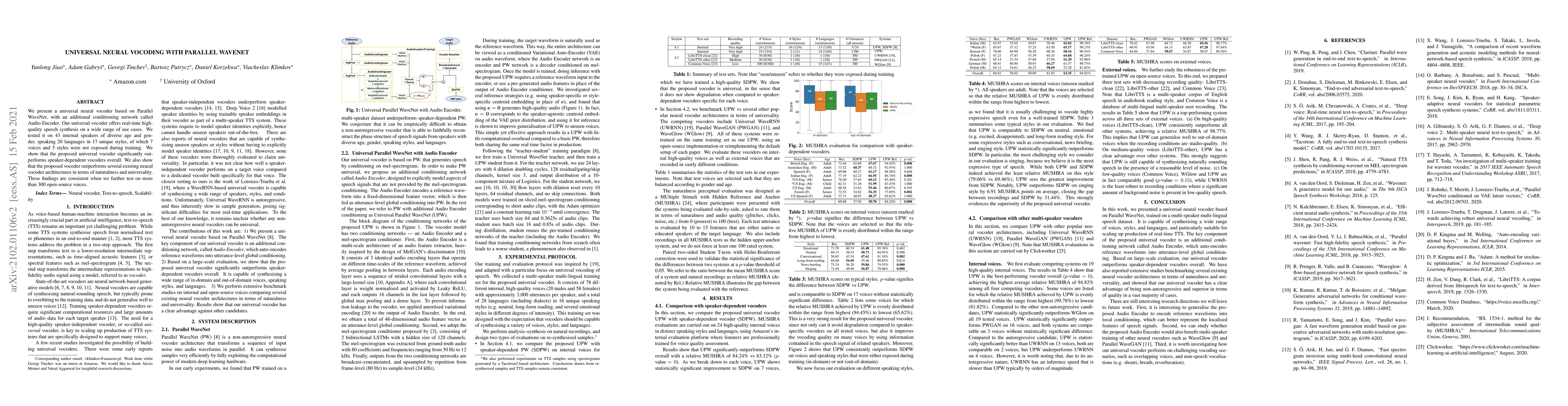 Researchers developed a universal neural vocoder that outperforms traditional speaker-dependent models in naturalness and universality, allowing for real-time high-quality speech synthesis on diverse languages and styles.
