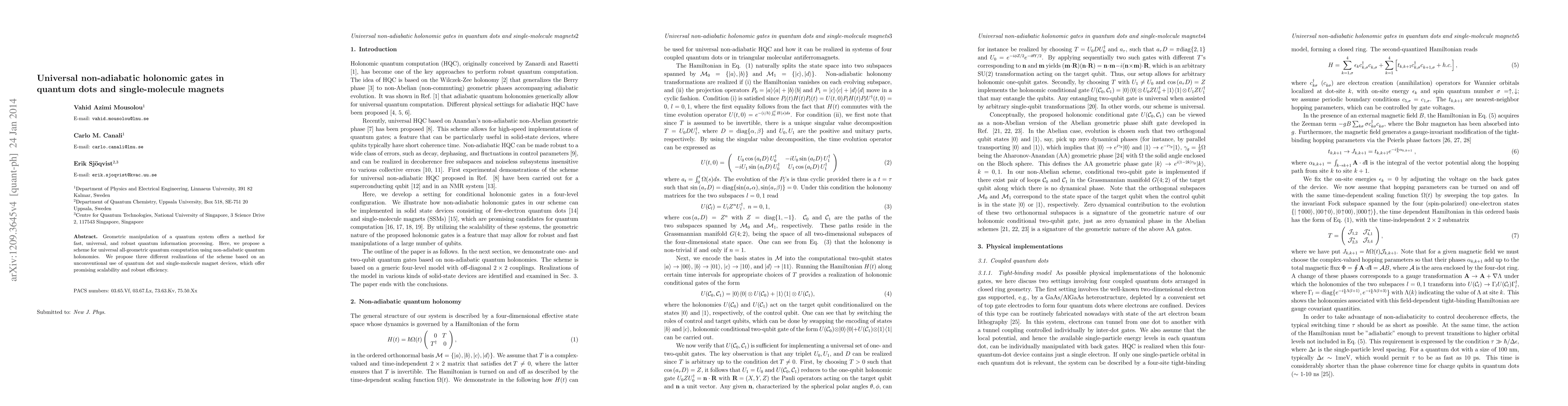 This paper proposes a scheme for universal quantum computation using non-adiabatic quantum holonomies, demonstrating its feasibility through quantum dot and single-molecule magnet devices for scalable and efficient quantum information processing.