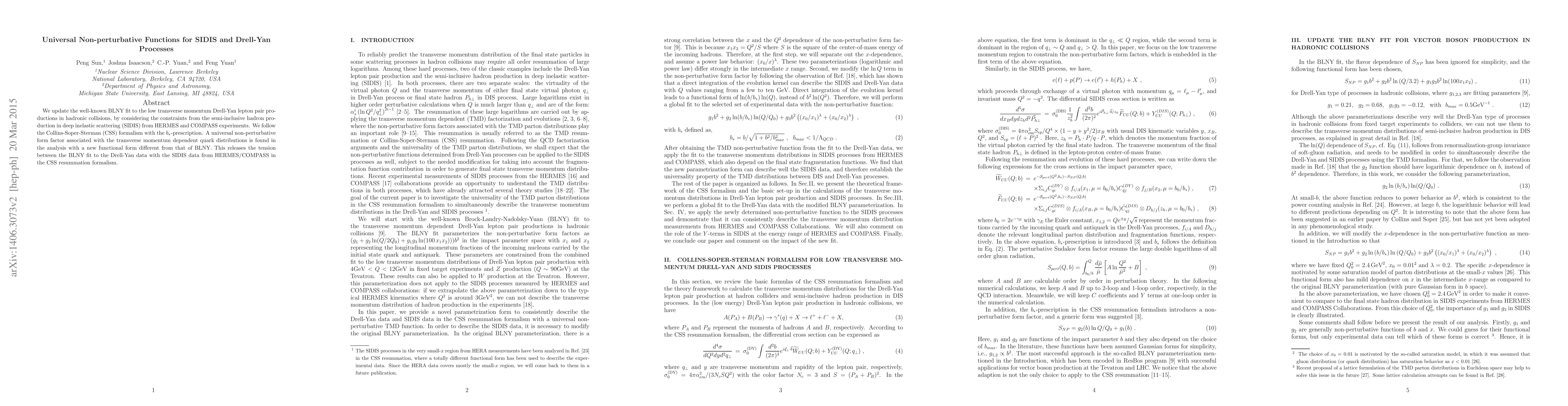 We update the well-known BLNY fit to the low transverse momentum Drell-Yan lepton pair productions in hadronic collisions, by considering the constraints from the semi-inclusive hadron production in deep inelastic scattering (SIDIS) from HERMES and COMPASS experiments. We follow the Collins-Soper-Sterman (CSS) formalism with the b_*-prescription. A universal non-perturbative form factor associated with the transverse momentum dependent quark distributions is found in the analysis with a new functional form different from that of BLNY. This releases the tension between the BLNY fit to the Drell-Yan data with the SIDIS data from HERMES/COMPASS in the CSS resummation formalism.