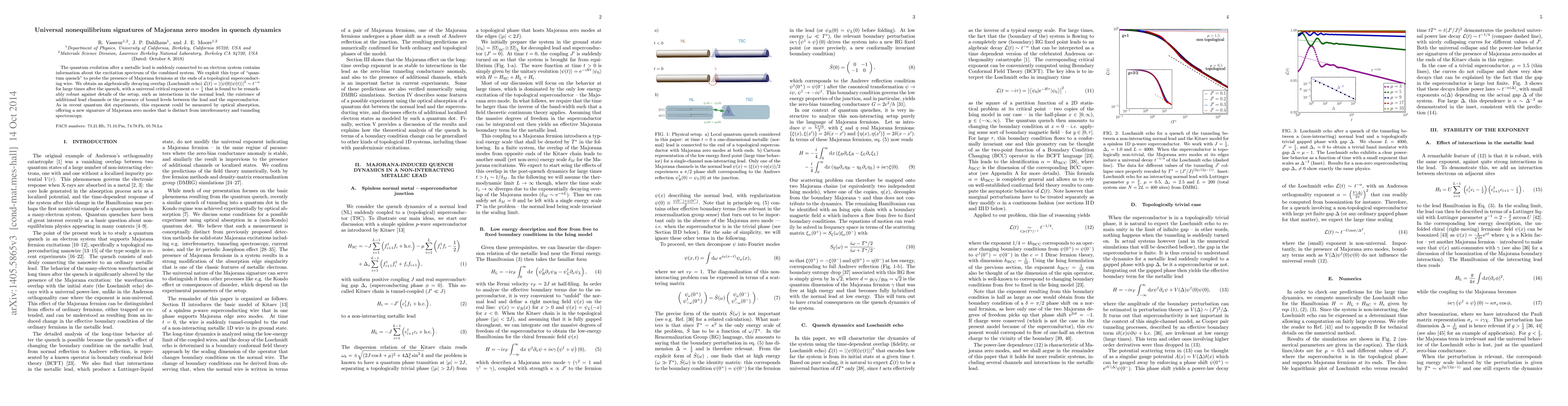 The paper presents a theoretical framework for using quantum quench dynamics to identify Majorana zero modes in topological superconducting wires, focusing on the universal power-law decay of the Loschmidt echo.