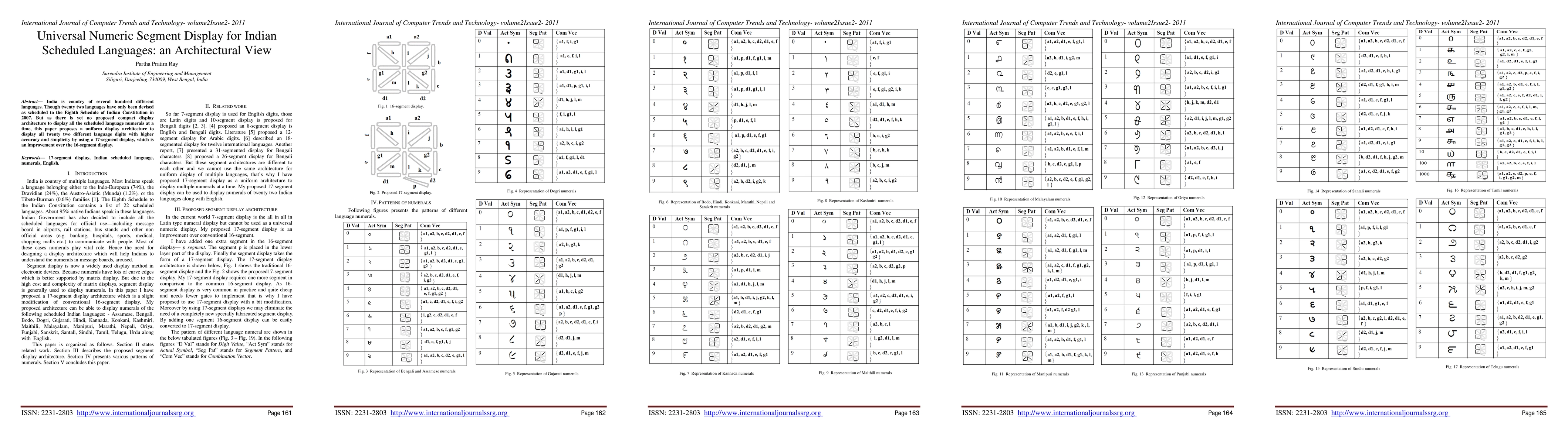 This paper proposes a universal numeric segment display architecture using a 17-segment display to accurately and simply display numerals for all twenty-two Indian scheduled languages, improving upon the existing 16-segment display.