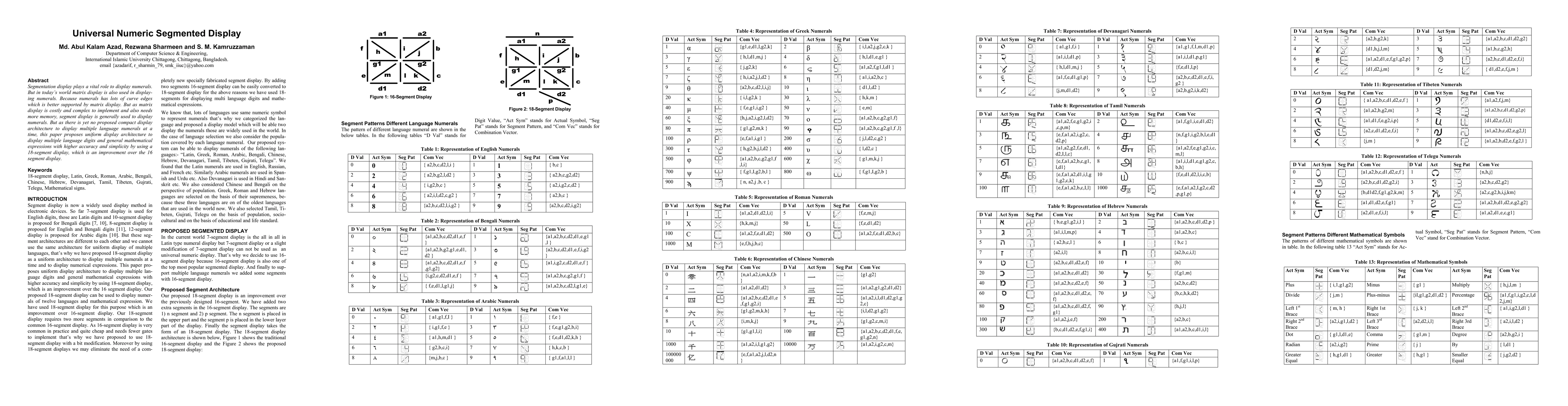 Segmentation display plays a vital role to display numerals. But in today's world matrix display is also used in displaying numerals. Because numerals has lots of curve edges which is better supported by matrix display. But as matrix display is costly and complex to implement and also needs more memory, segment display is generally used to display numerals. But as there is yet no proposed compact display architecture to display multiple language numerals at a time, this paper proposes uniform display architecture to display multiple language digits and general mathematical expressions with higher accuracy and simplicity by using a 18-segment display, which is an improvement over the 16 segment display.