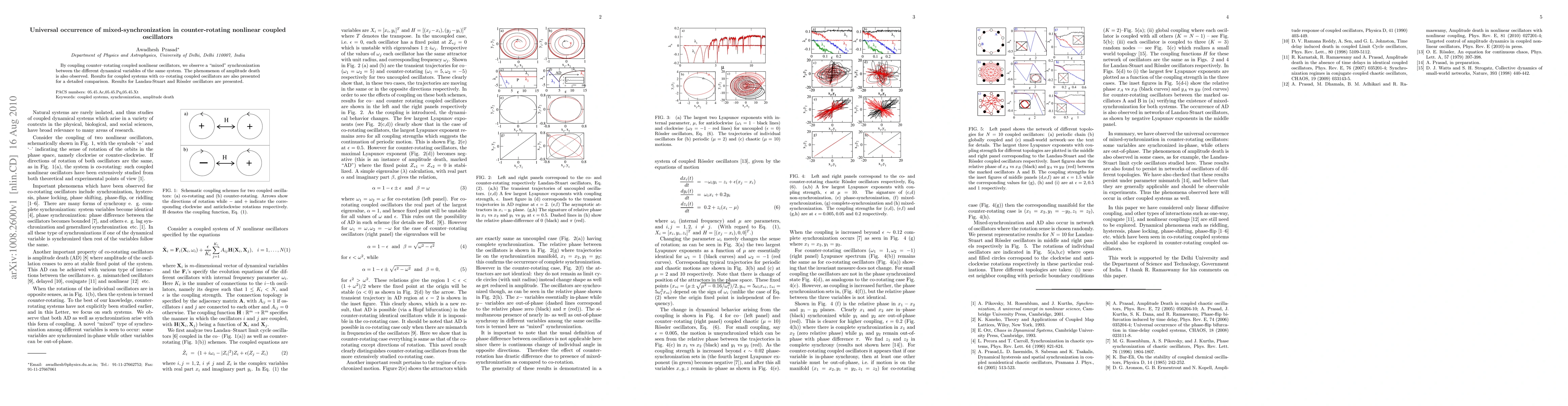 The paper presents a detailed analysis of mixed-synchronization and amplitude death in counter-rotating nonlinear coupled oscillators, distinguishing them from co-rotating configurations.