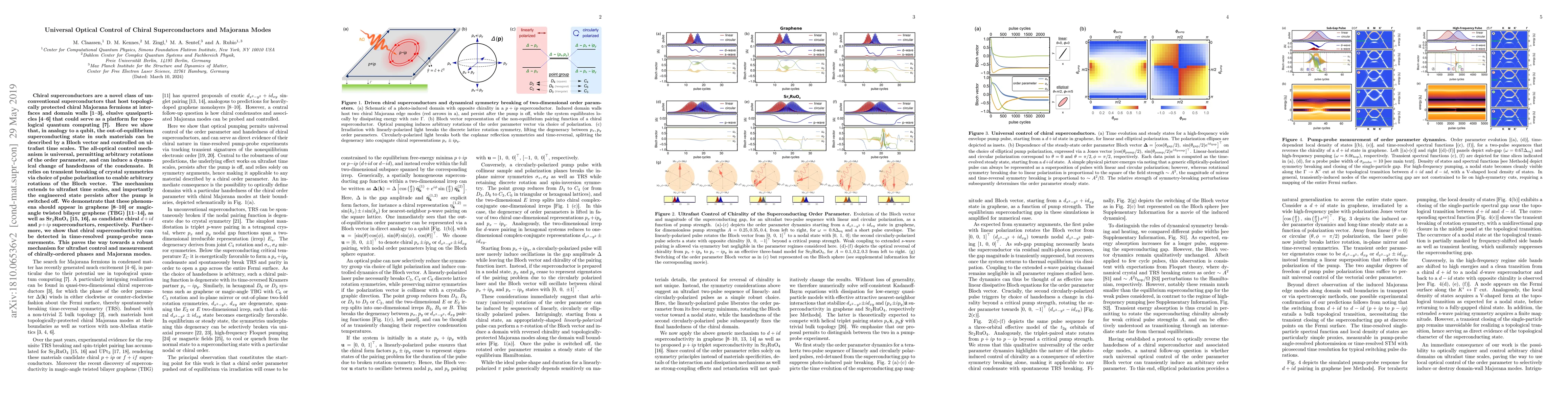 This paper demonstrates a universal optical method to control chiral superconductors and Majorana modes by manipulating their superconducting state using ultrafast light pulses. The technique allows for arbitrary rotations of the order parameter and induces a change in the condensate's handedness, paving the way for potential applications in topological quantum computing.