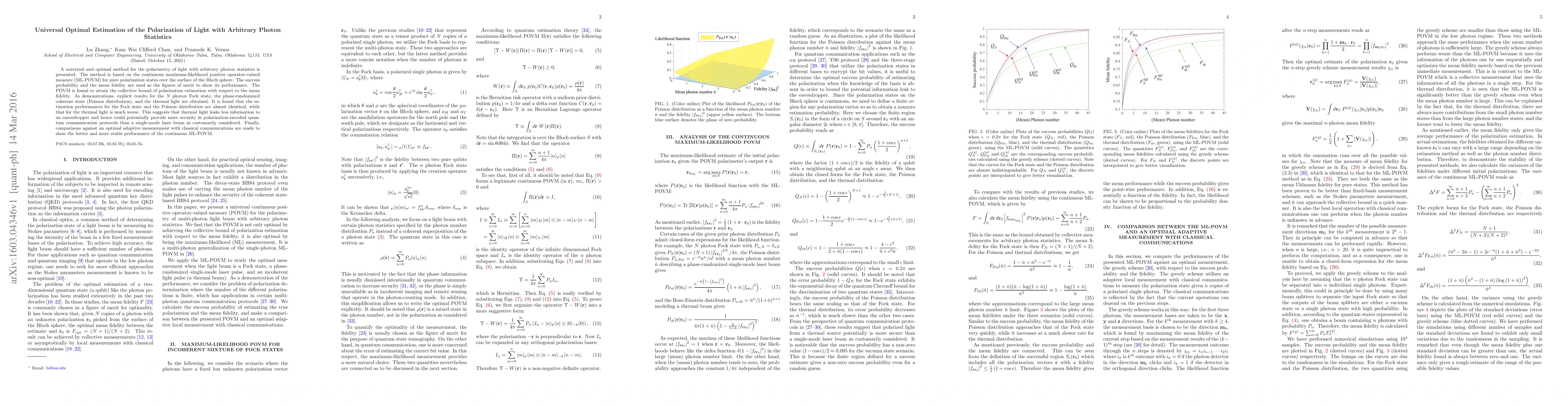 A universal and optimal method for the polarimetry of light with arbitrary photon statistics is presented. The method is based on the continuous maximum-likelihood positive operator-valued measure (ML-POVM) for pure polarization states over the surface of the Bloch sphere. The success probability and the mean fidelity are used as the figures of merit to show its performance. The POVM is found to attain the collective bound of polarization estimation with respect to the mean fidelity. As demonstrations, explicit results for the N photon Fock state, the phase-randomized coherent state (Poisson distribution), and the thermal light are obtained. It is found that the estimation performances for the Fock state and the Poisson distribution are almost identical, while that for the thermal light is much worse. This suggests that thermal light leaks less information to an eavesdropper and hence could potentially provide more security in polarization-encoded quantum communication protocols than a single-mode laser beam as customarily considered. Finally, comparisons against an optimal adaptive measurement with classical communications are made to show the better and more stable performance of the continuous ML-POVM.