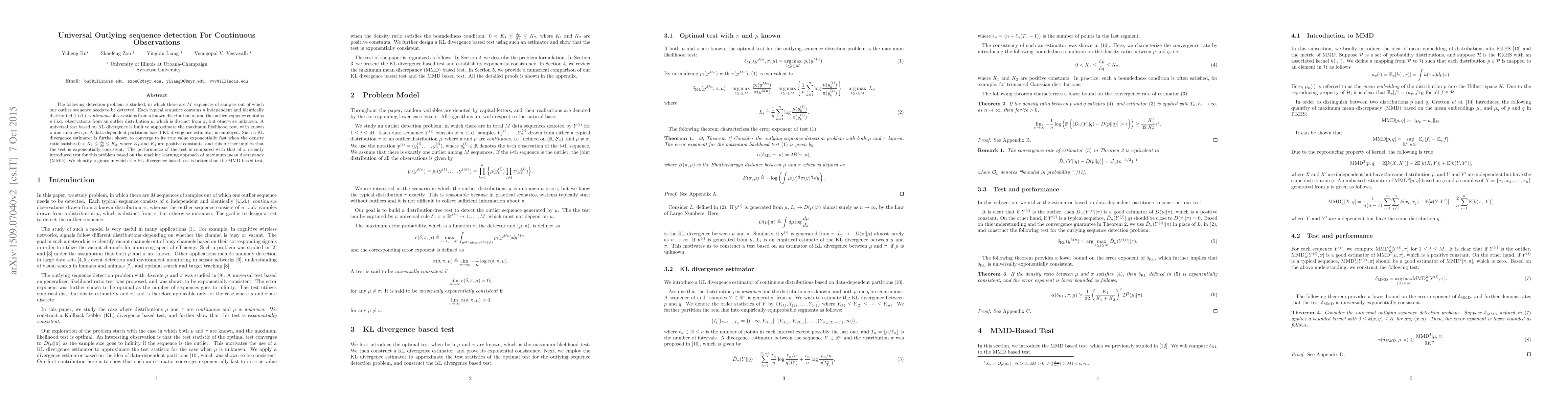 This paper develops a universal test for detecting outlier sequences using KL divergence, comparing it to a machine learning-based test using maximum mean discrepancy (MMD). The KL divergence test is shown to be exponentially consistent and outperforms the MMD test in certain regimes.