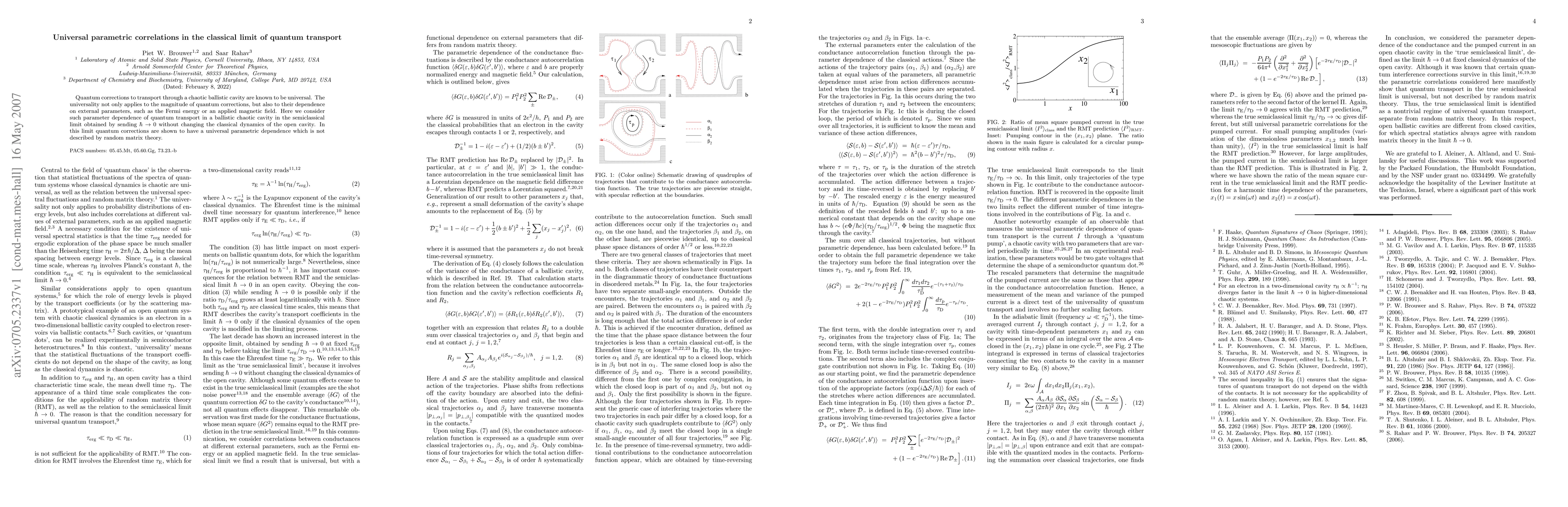 This paper investigates the universal parametric correlations in quantum transport as quantum corrections in a chaotic ballistic cavity transition to classical behavior. It reveals that while quantum effects are universal in magnitude, their parameter dependence in the semiclassical limit diverges from predictions of random matrix theory.
