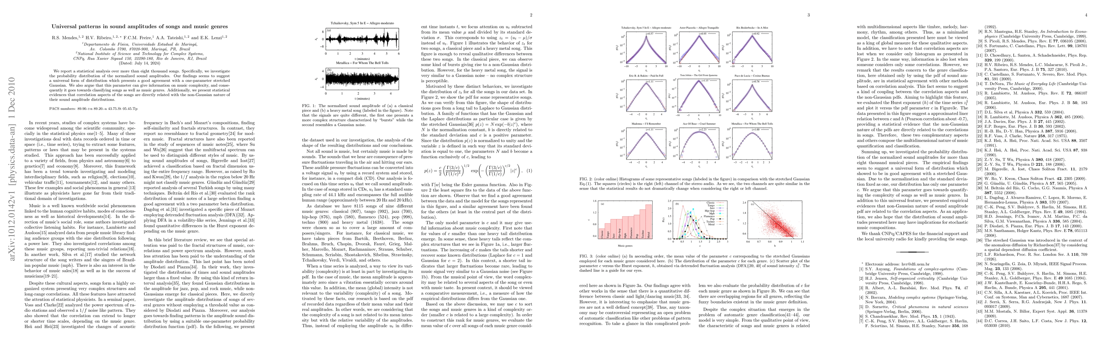 We report a statistical analysis over more than eight thousand songs. Specifically, we investigate the probability distribution of the normalized sound amplitudes. Our findings seems to suggest a universal form of distribution which presents a good agreement with a one-parameter stretched Gaussian. We also argue that this parameter can give information on music complexity, and consequently it goes towards classifying songs as well as music genres. Additionally, we present statistical evidences that correlation aspects of the songs are directly related with the non-Gaussian nature of their sound amplitude distributions.