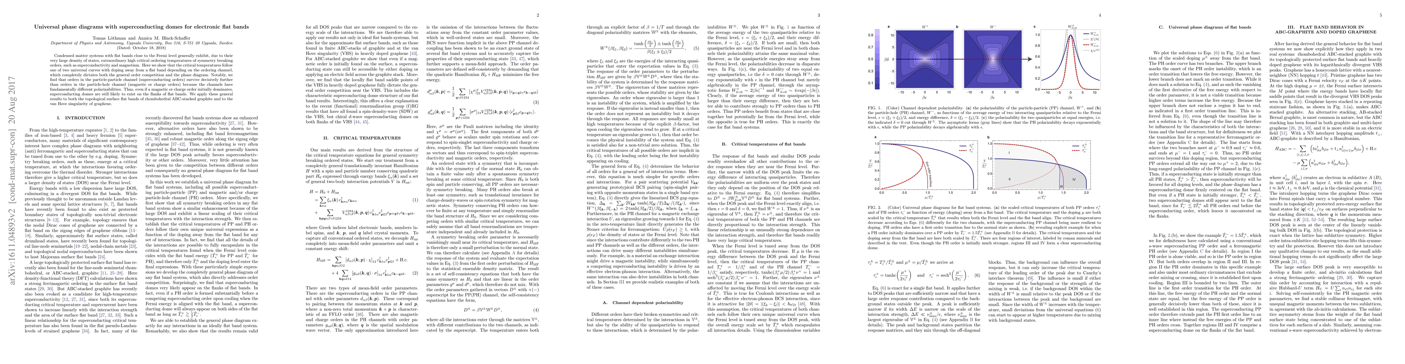 This paper demonstrates that superconducting domes in systems with electronic flat bands follow universal phase diagrams, dictated by the critical ordering temperatures. It reveals that superconductivity persists longer than magnetic or charge orders due to differing polarizabilities, predicting the existence of superconducting domes near flat bands.