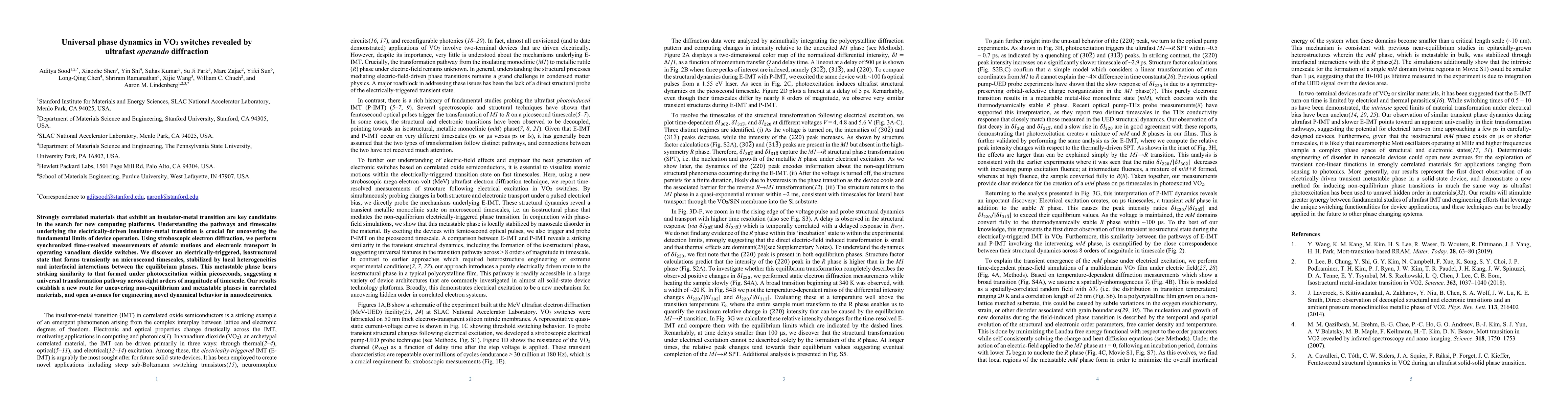 Researchers used ultrafast electron diffraction to study vanadium dioxide switches, discovering a metastable phase that forms on microsecond timescales under electrical stimulation, similar to a phase formed under light excitation on picoseconds, suggesting a universal transformation pathway.