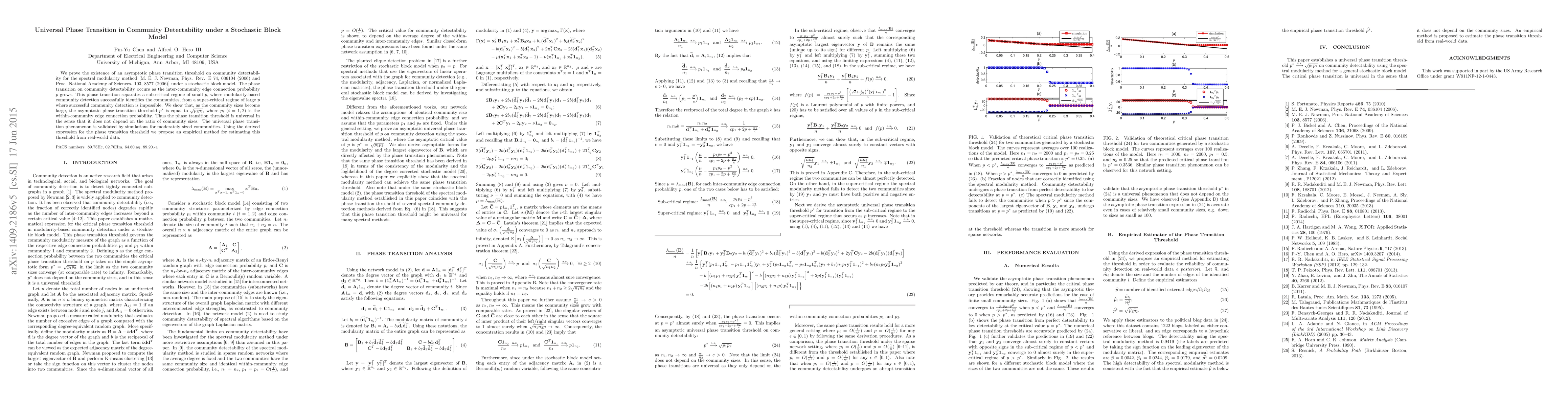 Researchers prove a universal phase transition threshold for community detectability in networks, showing that as edge connection probabilities grow, successful community detection becomes impossible; the threshold is independent of community size ratio.
