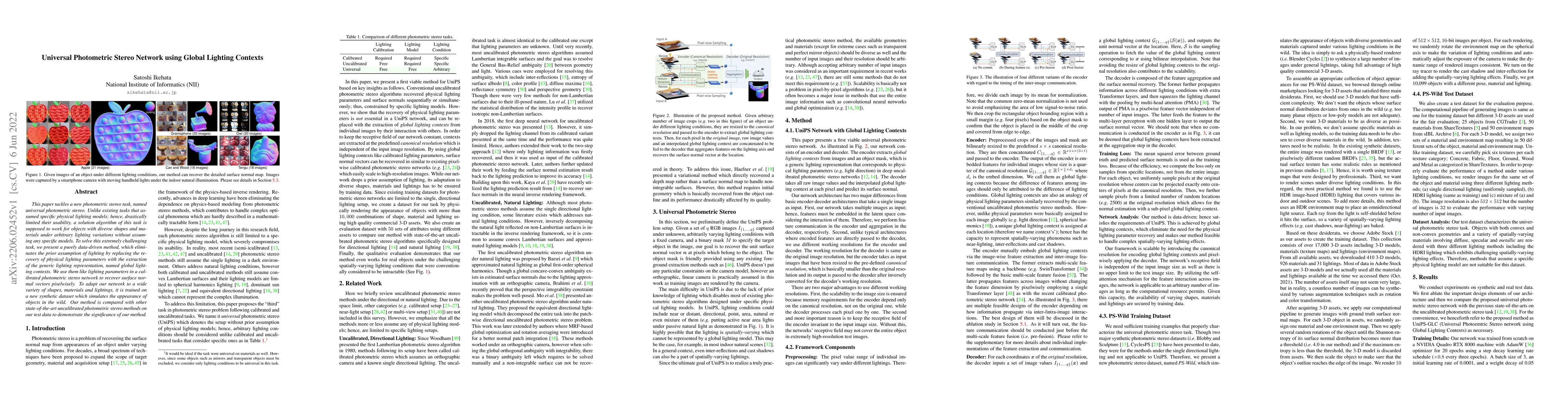 This paper introduces a universal photometric stereo network that works under any lighting conditions without assuming specific physical models, using a data-driven approach to extract global lighting contexts for pixelwise surface normal recovery. The method is trained on a synthetic dataset simulating diverse real-world objects and is shown to outperform other uncalibrated photometric stereo techniques.