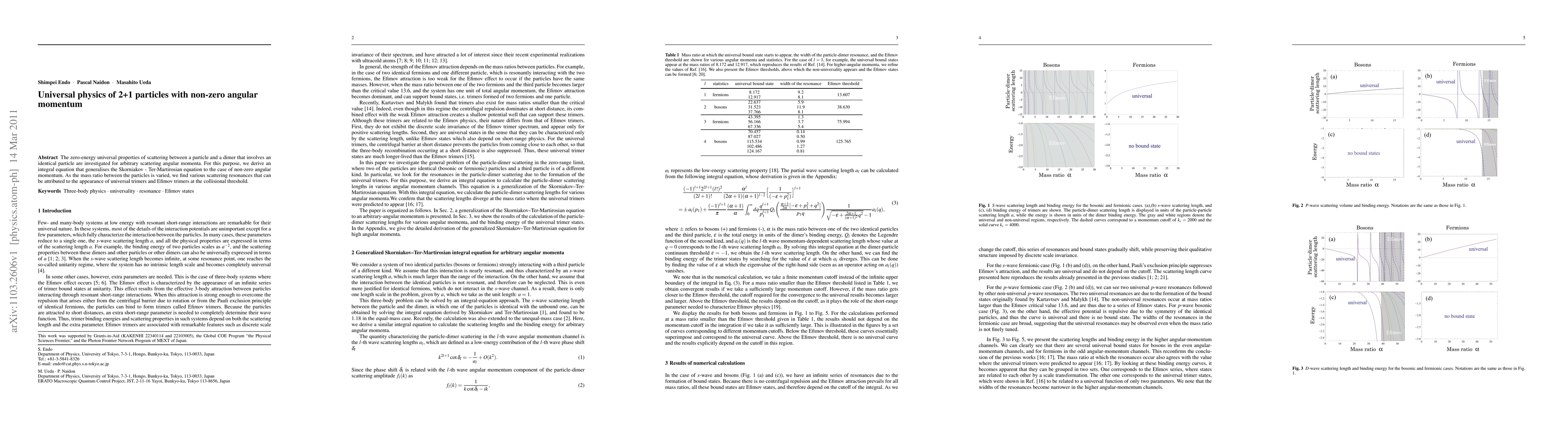 Researchers investigated universal properties of scattering between a particle and a dimer with non-zero angular momentum, finding various resonances attributed to the appearance of universal trimers and Efimov trimers at collisional thresholds.