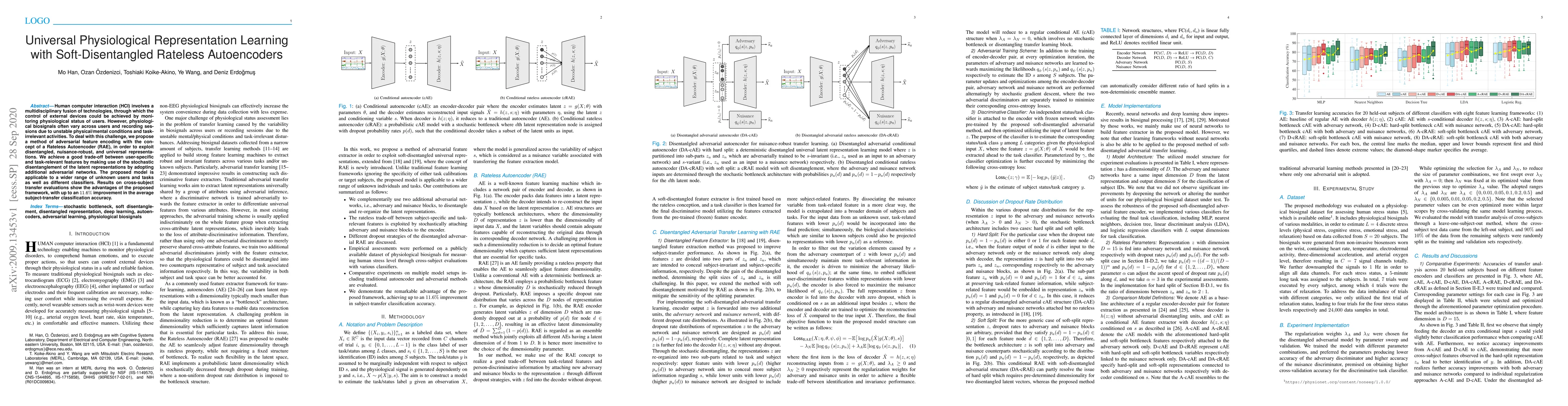 This paper proposes a method of adversarial feature encoding using Rateless Autoencoders (RAE) to create disentangled, robust, and universal physiological representations for human-computer interaction. The model achieves improved cross-subject transfer classification accuracy by up to 11.6%, demonstrating its effectiveness for diverse users and tasks.