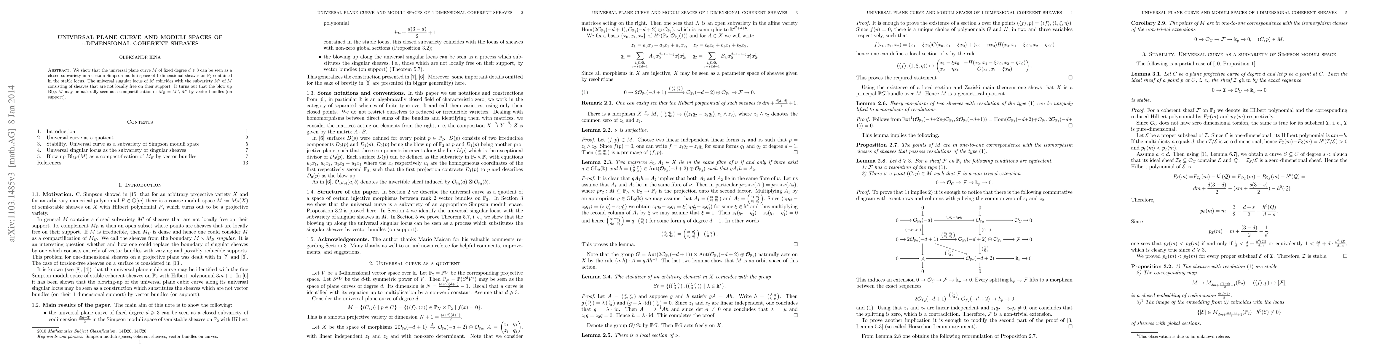 This paper demonstrates that the universal plane curve of fixed degree d > 2 is embedded within a Simpson moduli space of 1-dimensional coherent sheaves on a projective plane, residing in the stable locus. The blow-up of this curve along its singular locus compactifies it by incorporating vector bundles on the support.