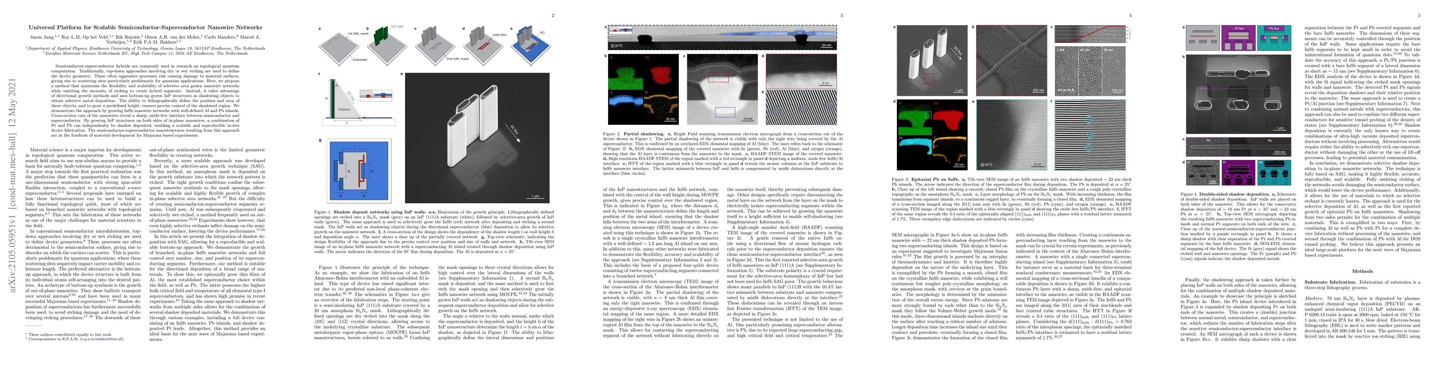 This paper presents a novel method for creating scalable semiconductor-superconductor nanowire networks without damaging material surfaces, using bottom-up grown InP structures for shadowing and selective metal deposition. The approach enables precise control and fabrication of hybrid segments, crucial for topological quantum computation.