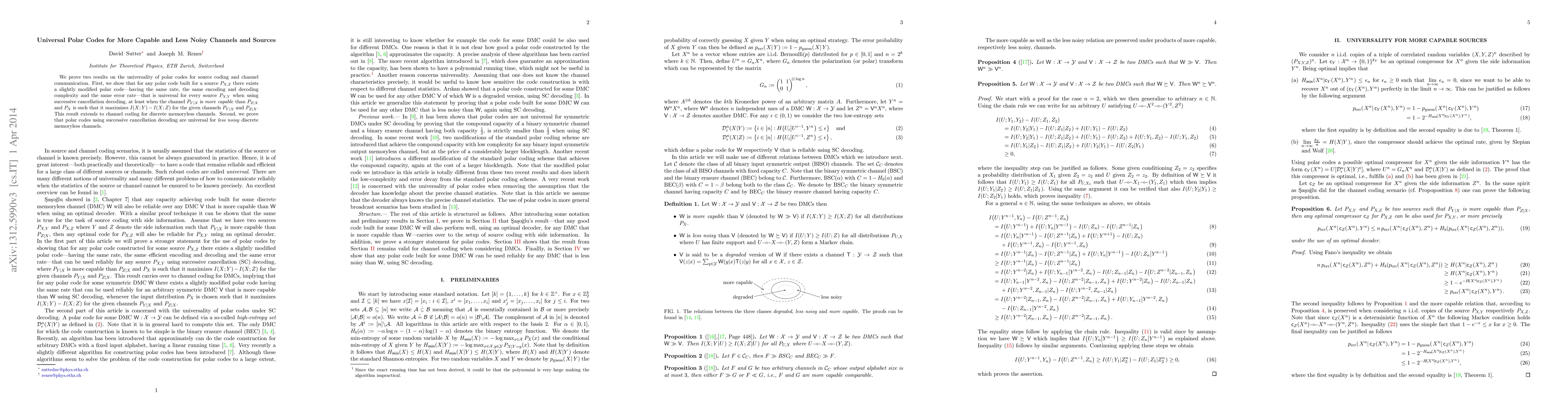 We prove two results on the universality of polar codes for source coding and channel communication. First, we show that for any polar code built for a source $P_{X,Z}$ there exists a slightly modified polar code - having the same rate, the same encoding and decoding complexity and the same error rate - that is universal for every source $P_{X,Y}$ when using successive cancellation decoding, at least when the channel $P_{Y|X}$ is more capable than $P_{Z|X}$ and $P_X$ is such that it maximizes $I(X;Y) - I(X;Z)$ for the given channels $P_{Y|X}$ and $P_{Z|X}$. This result extends to channel coding for discrete memoryless channels. Second, we prove that polar codes using successive cancellation decoding are universal for less noisy discrete memoryless channels.