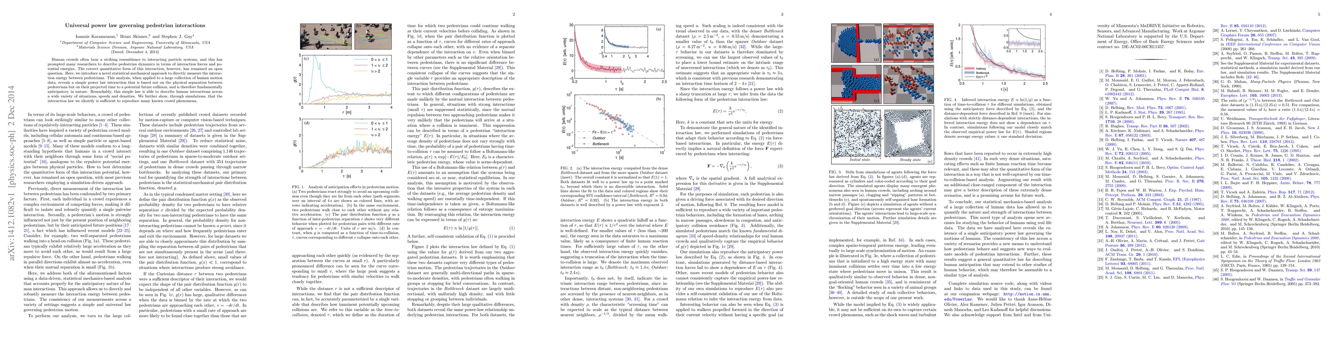 Human crowds often bear a striking resemblance to interacting particle systems, and this has prompted many researchers to describe pedestrian dynamics in terms of interaction forces and potential energies. The correct quantitative form of this interaction, however, has remained an open question. Here, we introduce a novel statistical-mechanical approach to directly measure the interaction energy between pedestrians. This analysis, when applied to a large collection of human motion data, reveals a simple power law interaction that is based not on the physical separation between pedestrians but on their projected time to a potential future collision, and is therefore fundamentally anticipatory in nature. Remarkably, this simple law is able to describe human interactions across a wide variety of situations, speeds and densities. We further show, through simulations, that the interaction law we identify is sufficient to reproduce many known crowd phenomena.