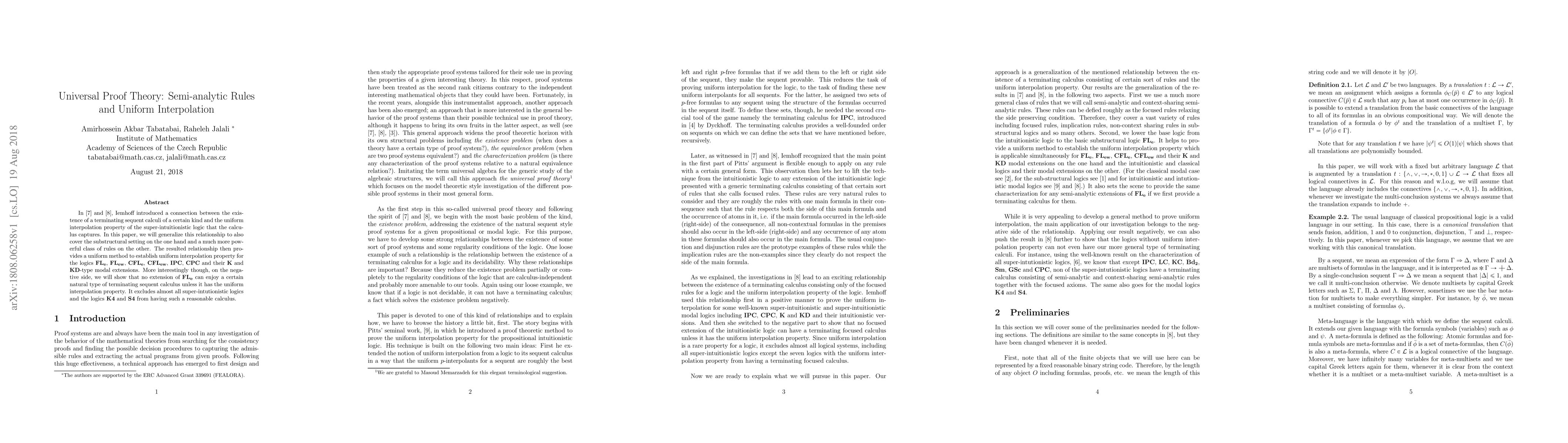 In [7] and [8], Iemhoff introduced a connection between the existence of a terminating sequent calculi of a certain kind and the uniform interpolation property of the super-intuitionistic logic that the calculus captures. In this paper, we will generalize this relationship to also cover the substructural setting on the one hand and a much more powerful class of rules on the other. The resulted relationship then provides a uniform method to establish uniform interpolation property for the logics $\mathbf{FL_e}$, $\mathbf{FL_{ew}}$, $\mathbf{CFL_e}$, $\mathbf{CFL_{ew}}$, $\mathbf{IPC}$, $\mathbf{CPC}$ and their $\mathbf{K}$ and $\mathbf{KD}$-type modal extensions. More interestingly though, on the negative side, we will show that no extension of $\mathbf{FL_e}$ can enjoy a certain natural type of terminating sequent calculus unless it has the uniform interpolation property. It excludes almost all super-intutionistic logics and the logics $\mathbf{K4}$ and $\mathbf{S4}$ from having such a reasonable calculus.