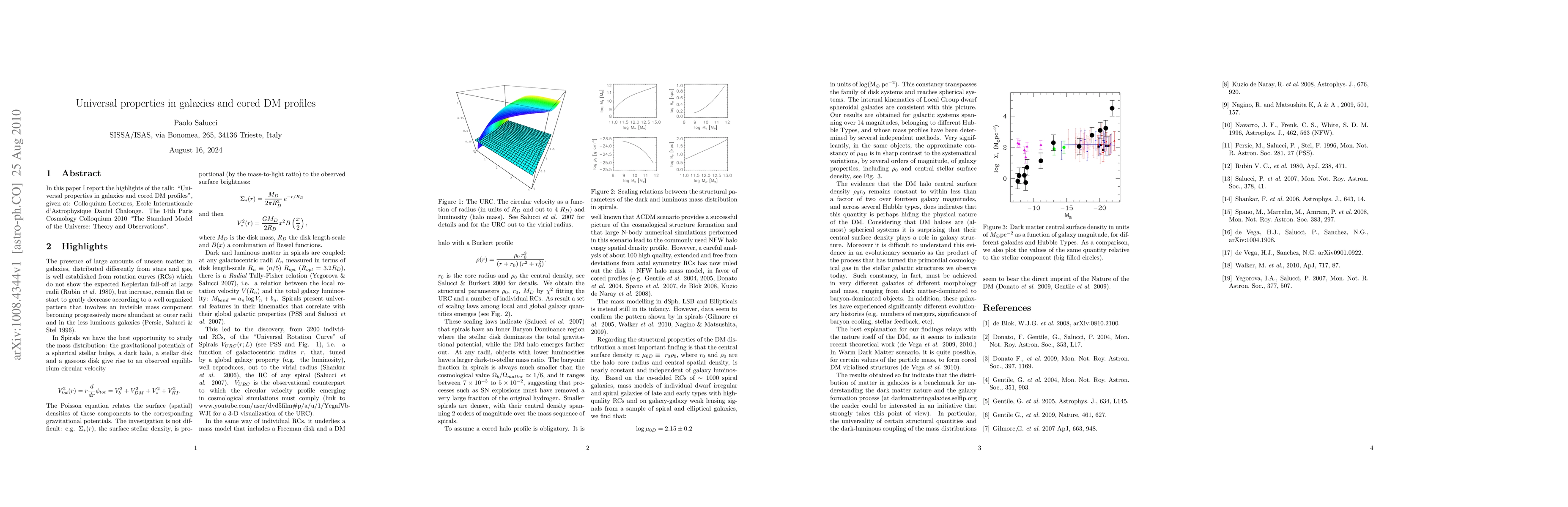 This paper discusses the universal properties observed in galaxies and presents evidence for cored dark matter profiles, highlighting findings from a talk delivered at the 14th Paris Cosmology Colloquium in 2010.