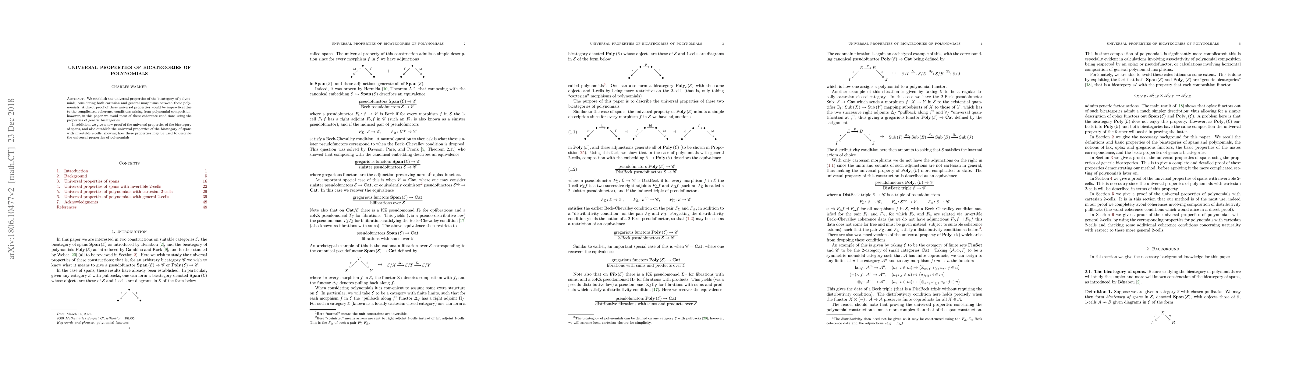 We establish the universal properties of the bicategory of polynomials, considering both cartesian and general morphisms between these polynomials. A direct proof of these universal properties would be impractical due to the complicated coherence conditions arising from polynomial composition; however, in this paper we avoid most of these coherence conditions using the properties of generic bicategories. In addition, we give a new proof of the universal properties of the bicategory of spans, and also establish the universal properties of the bicategory of spans with invertible 2-cells; showing how these properties may be used to describe the universal properties of polynomials.