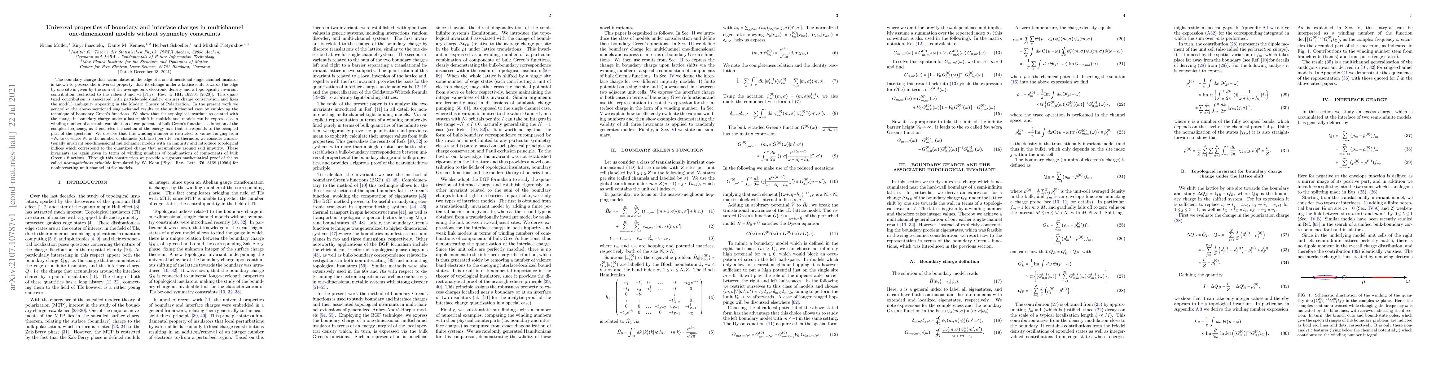 Researchers generalize a single-channel result to multichannel models, showing that boundary charge changes can be expressed as winding numbers of bulk Green's functions, ensuring quantized and conserved charges.