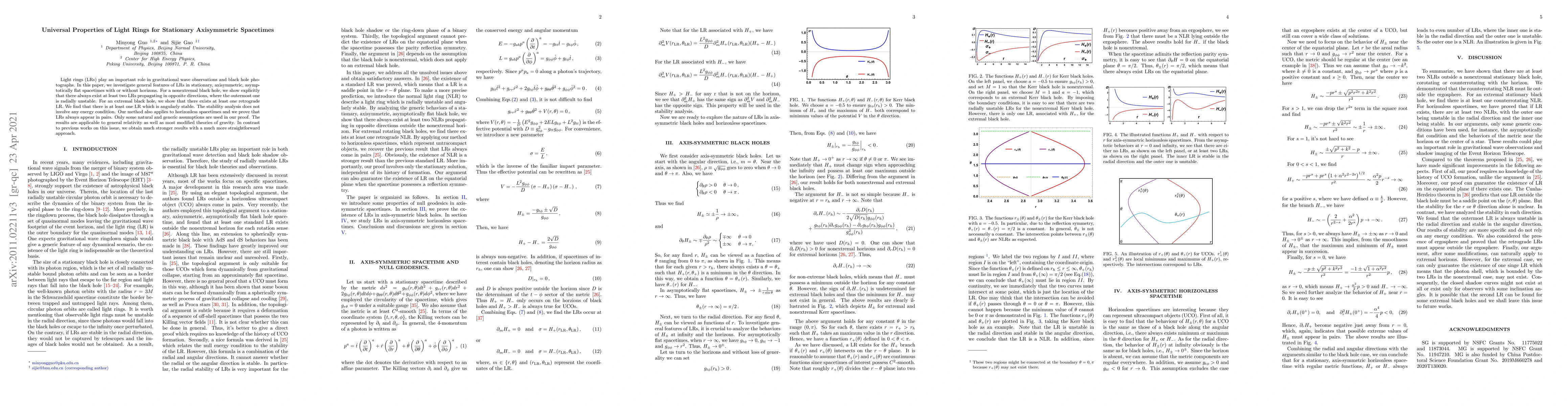 Light rings (LRs) play an important role in gravitational wave observations and black hole photographs. In this paper, we investigate general features of LRs in stationary, axisymmetric, asymptotically flat spacetimes with or without horizons. For a nonextremal black hole, we show explicitly that there always exist at least two LRs propagating in opposite directions, where the outermost one is radially unstable. For an extremal black hole, we show that there exists at least one retrograde LR. We find that there is at least one LR which is angularly stable. The stability analysis does not involve any energy condition. Our method also applies to horizonless spacetimes and we prove that LRs always appear in pairs. Only some natural and generic assumptions are used in our proof. The results are applicable to general relativity as well as most modified theories of gravity. In contrast to previous works on this issue, we obtain much stronger results with a much more straightforward approach.