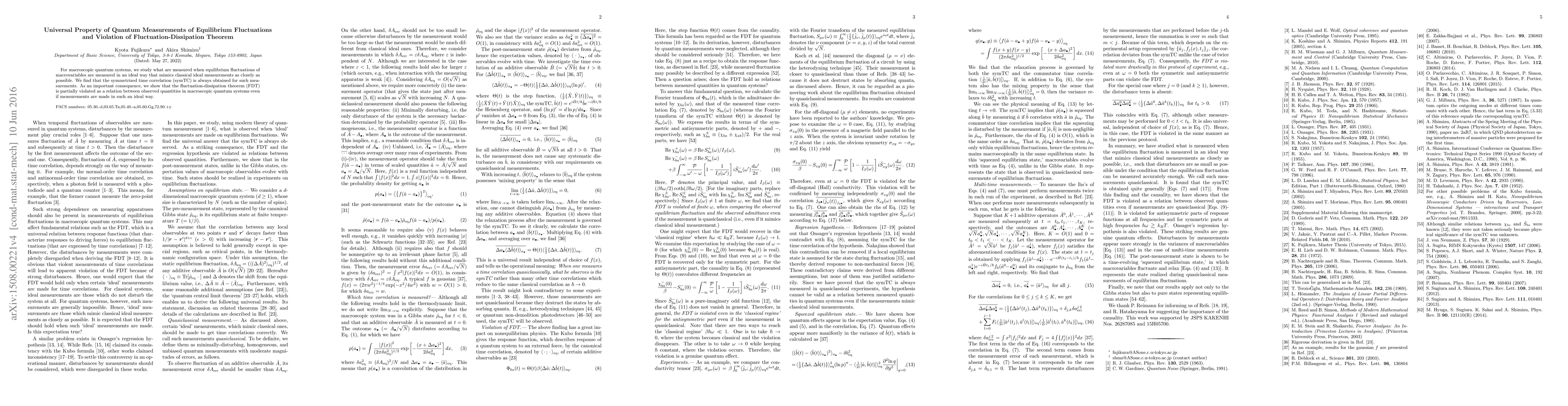 This paper investigates the ideal measurement of equilibrium fluctuations in macroscopic quantum systems and finds that symmetrized time correlation is always obtained, leading to a partial violation of the fluctuation-dissipation theorem in such systems.