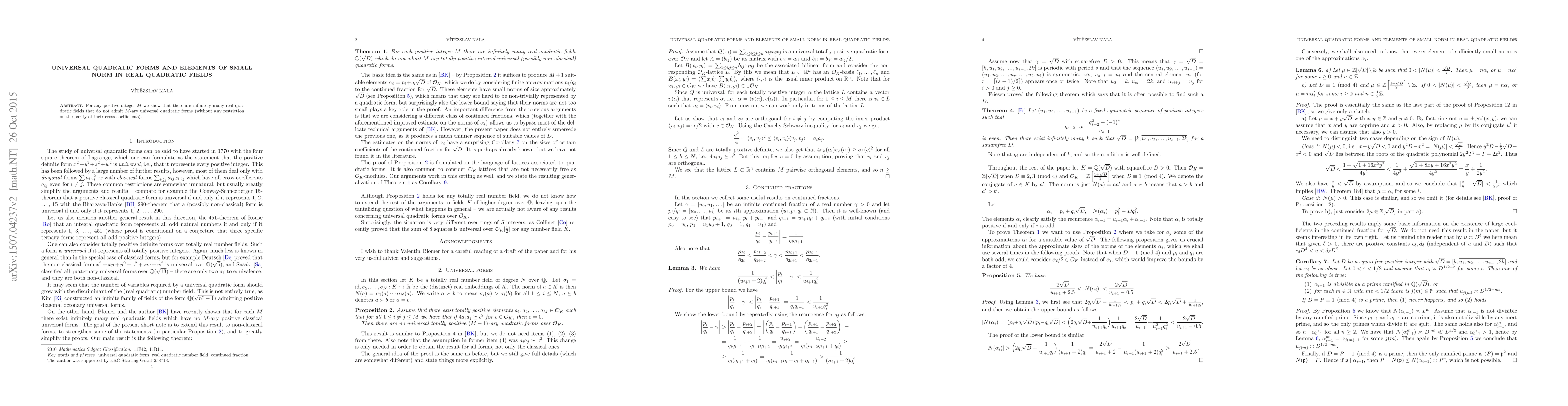 Summary: The paper demonstrates that for any positive integer M, there exist infinitely many real quadratic fields that lack M-ary universal quadratic forms, regardless of the parity of their cross coefficients. This finding highlights the scarcity of such quadratic forms in certain real quadratic fields.