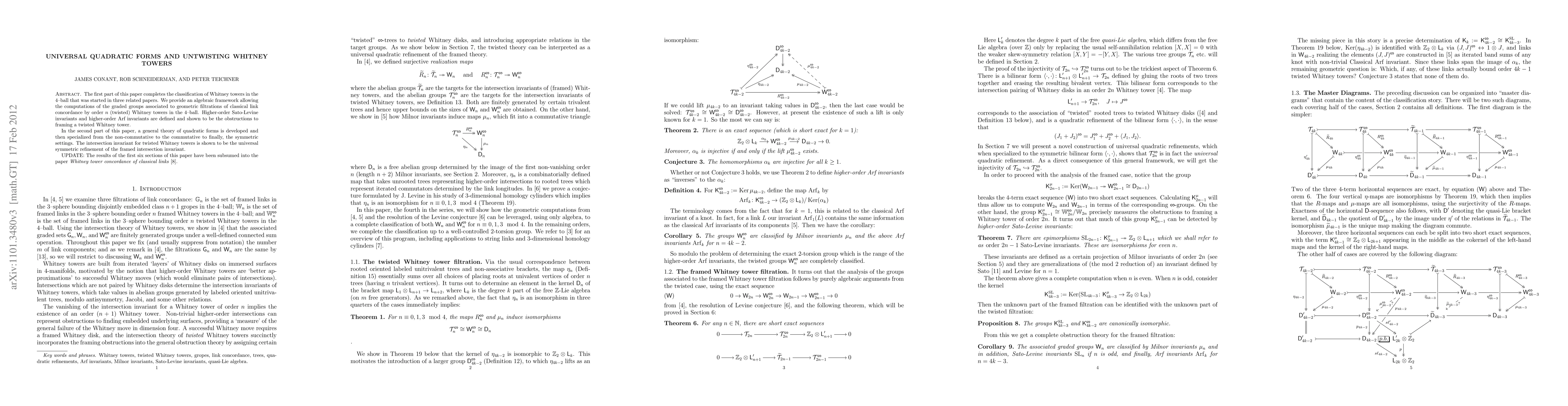 This paper completes the classification of Whitney towers in the 4-ball and introduces an algebraic framework for computing associated graded groups. It defines higher-order invariants and shows they obstruct framing of twisted Whitney towers, and develops a theory of universal quadratic forms, proving the intersection invariant for twisted Whitney towers is a universal symmetric refinement.