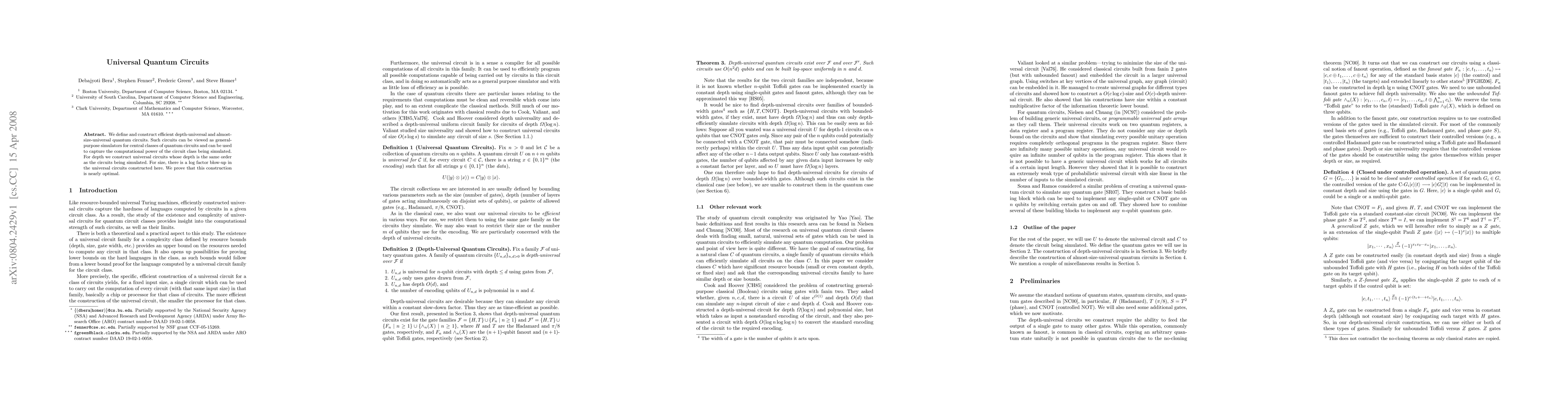 This paper constructs depth-universal and almost-size-universal quantum circuits, enabling them to simulate various central classes of quantum circuits with minimal increase in depth and a logarithmic increase in size, proving near-optimality of the approach.