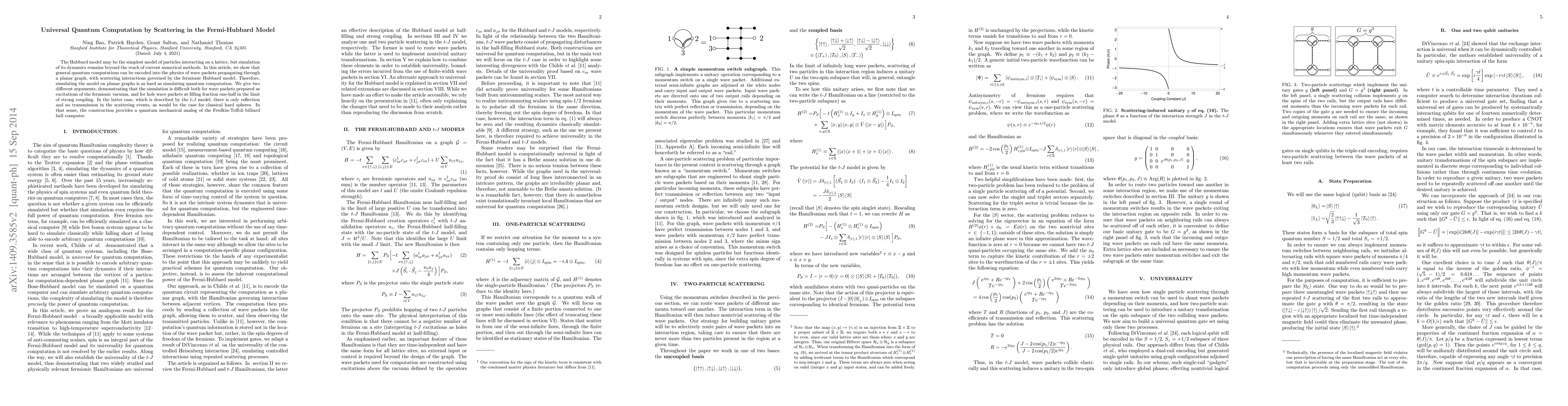 The Hubbard model may be the simplest model of particles interacting on a lattice, but simulation of its dynamics remains beyond the reach of current numerical methods. In this article, we show that general quantum computations can be encoded into the physics of wave packets propagating through a planar graph, with scattering interactions governed by the fermionic Hubbard model. Therefore, simulating the model on planar graphs is as hard as simulating quantum computation. We give two different arguments, demonstrating that the simulation is difficult both for wave packets prepared as excitations of the fermionic vacuum, and for hole wave packets at filling fraction one-half in the limit of strong coupling. In the latter case, which is described by the t-J model, there is only reflection and no transmission in the scattering events, as would be the case for classical hard spheres. In that sense, the construction provides a quantum mechanical analog of the Fredkin-Toffoli billiard ball computer.
