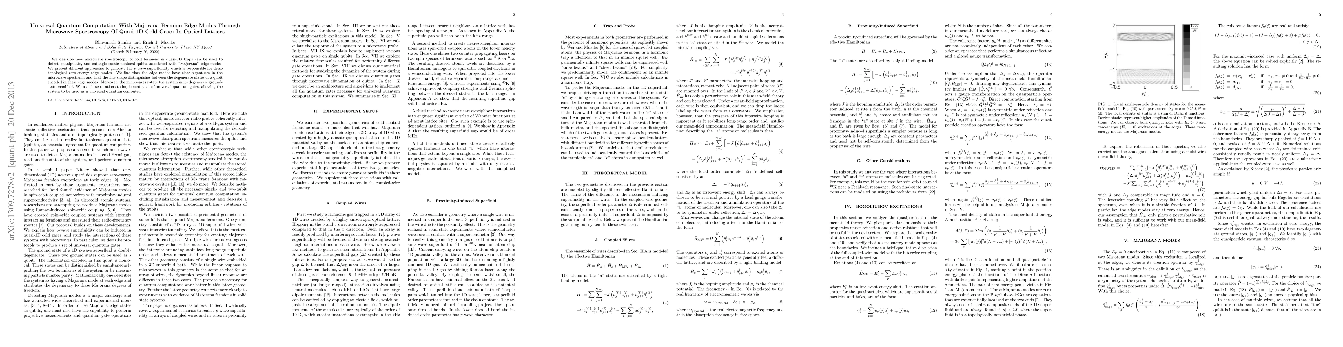 We describe how microwave spectroscopy of cold fermions in quasi-1D traps can be used to detect, manipulate, and entangle exotic non-local qbits associated with "Majorana" edge modes. We present different approaches to generate the p-wave superfluidity which is responsible for these topological zero-energy edge modes. We find that the edge modes have clear signatures in the microwave spectrum, and that the line shape distinguishes between the degenerate states of a qbit encoded in these edge modes. Moreover, the microwaves rotate the system in its degenerate ground-state manifold. We use these rotations to implement a set of universal quantum gates, allowing the system to be used as a universal quantum computer.